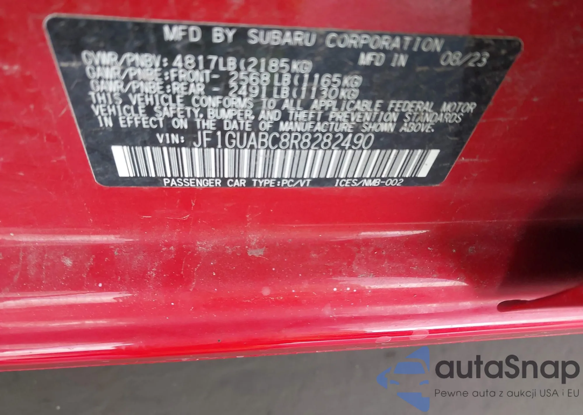 • VIN JF1GUABC8R8282490