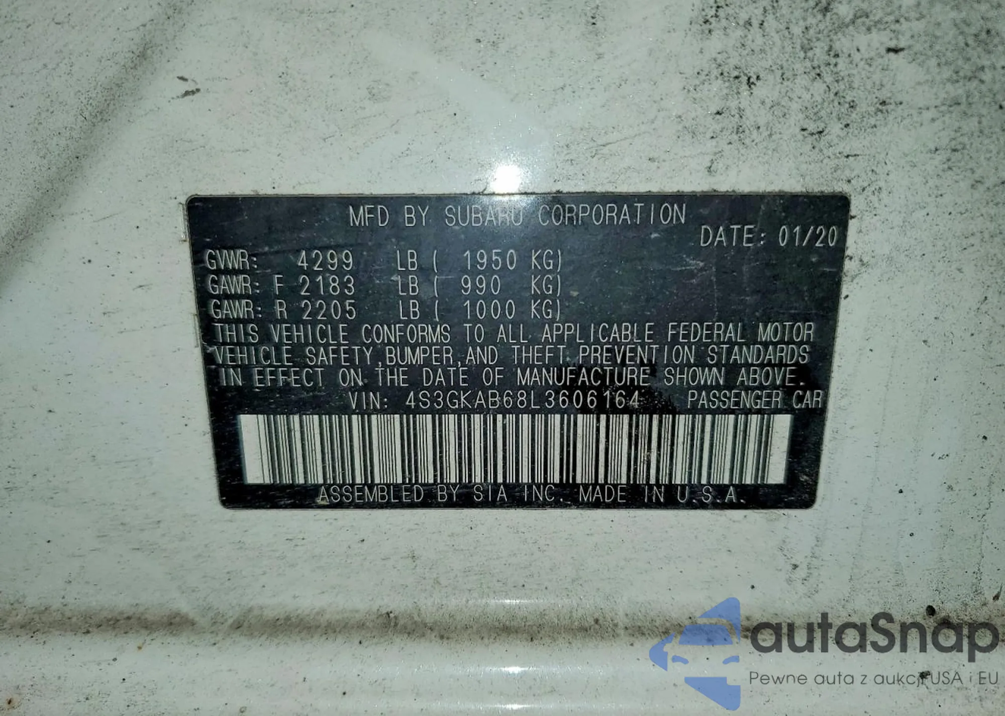 • VIN 4S3GKAB68L3606164