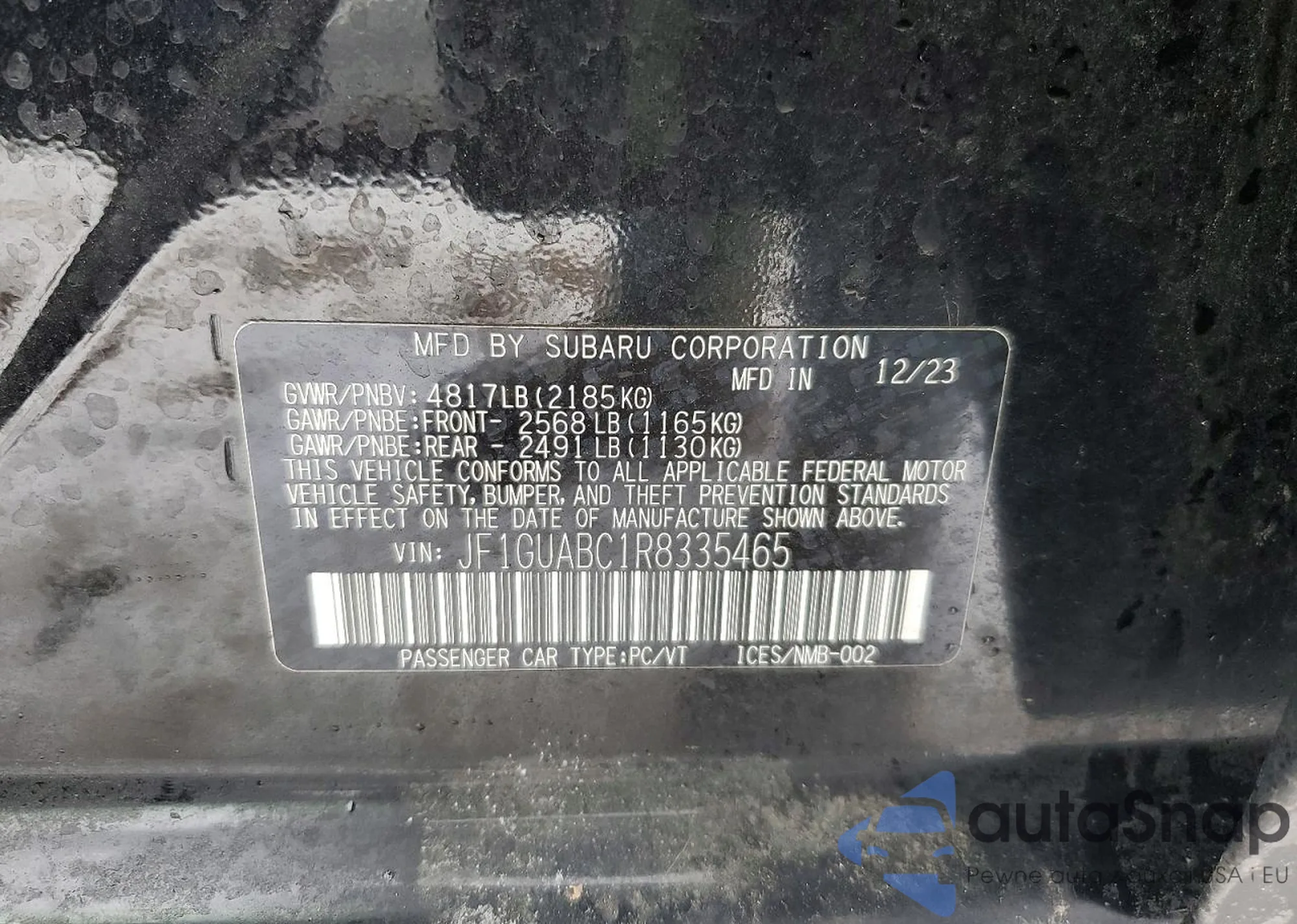 LOT: 73064345 VIN: JF1GUABC1R8335465