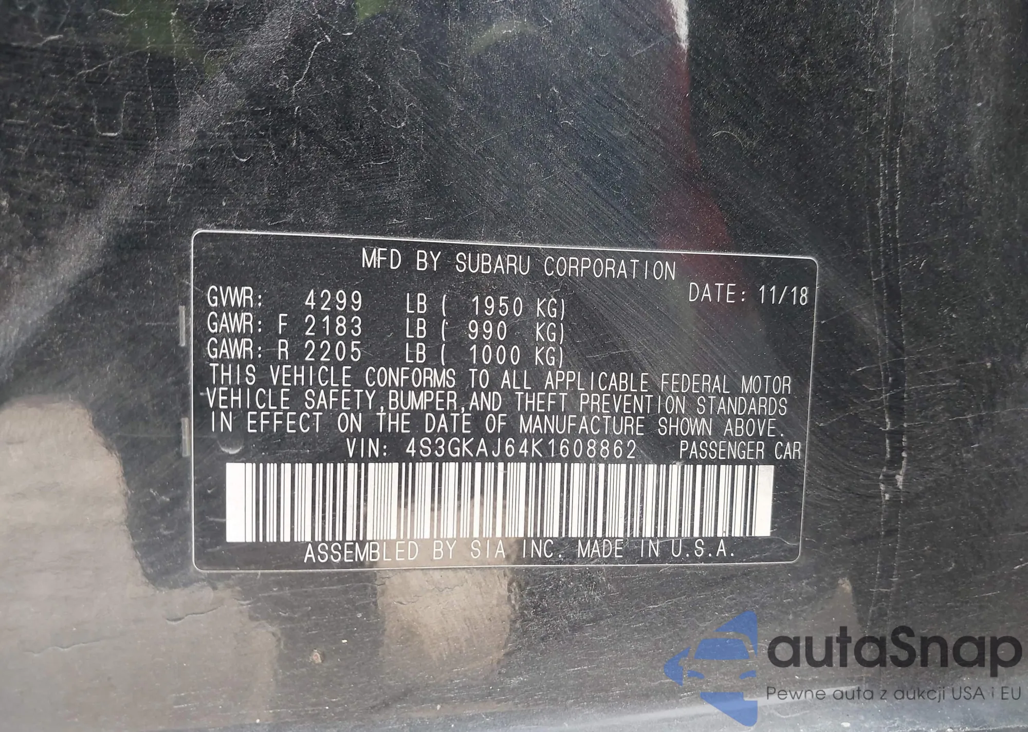 • VIN 4S3GKAJ64K1608862