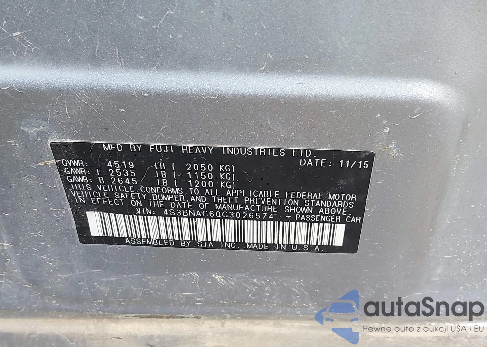 LOT: 37414935 VIN: 4S3BNAC60G3026574