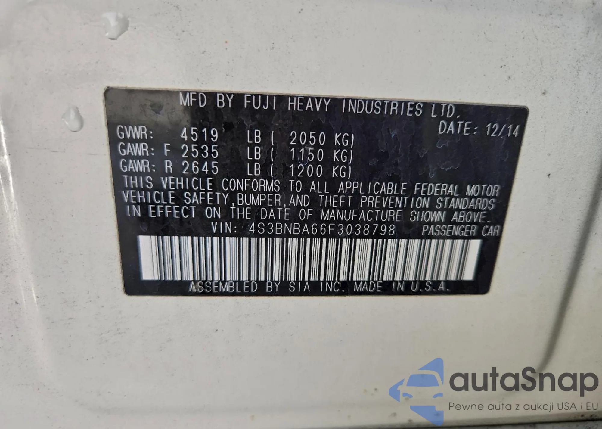 Kup Subaru Legacy z USA