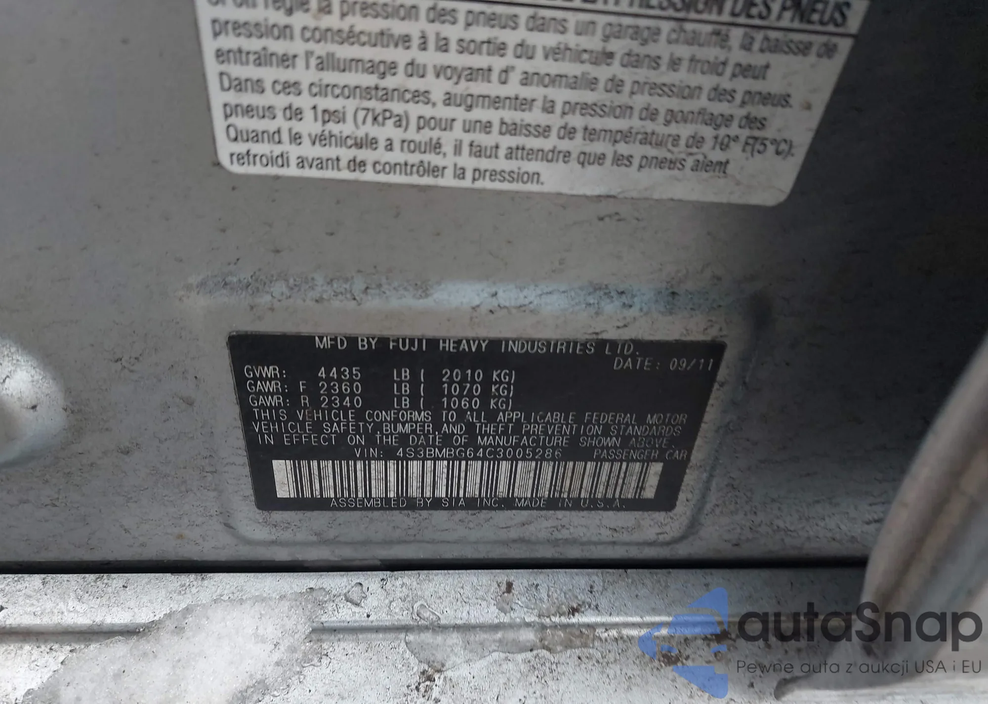 LOT: 44303700 VIN: 4S3BMBG64C3005286