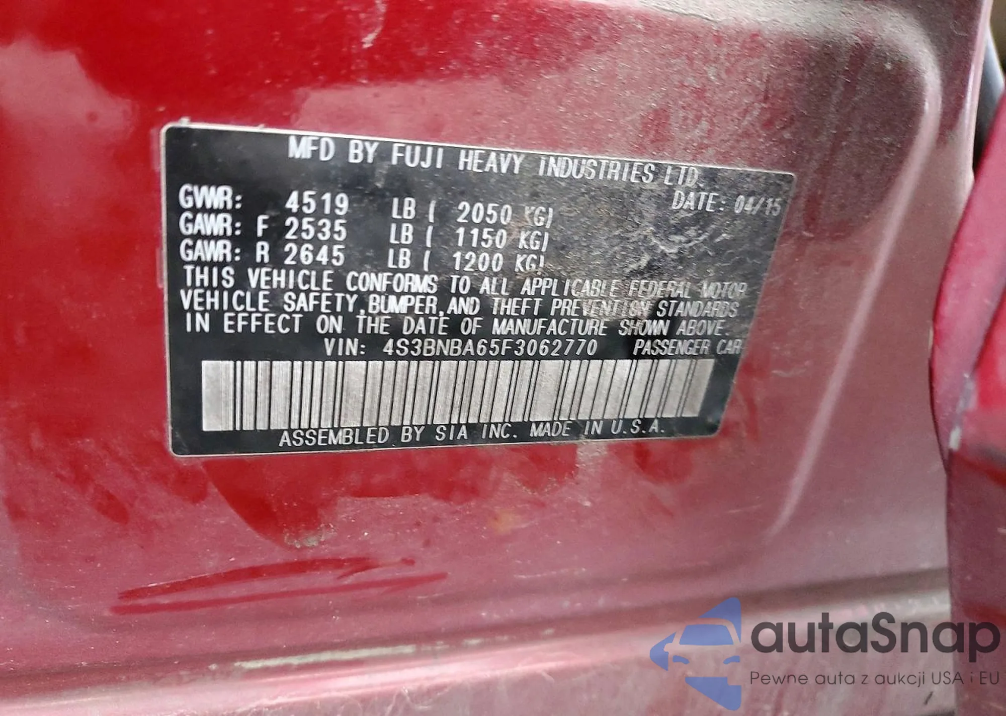 Kup Subaru Legacy z USA