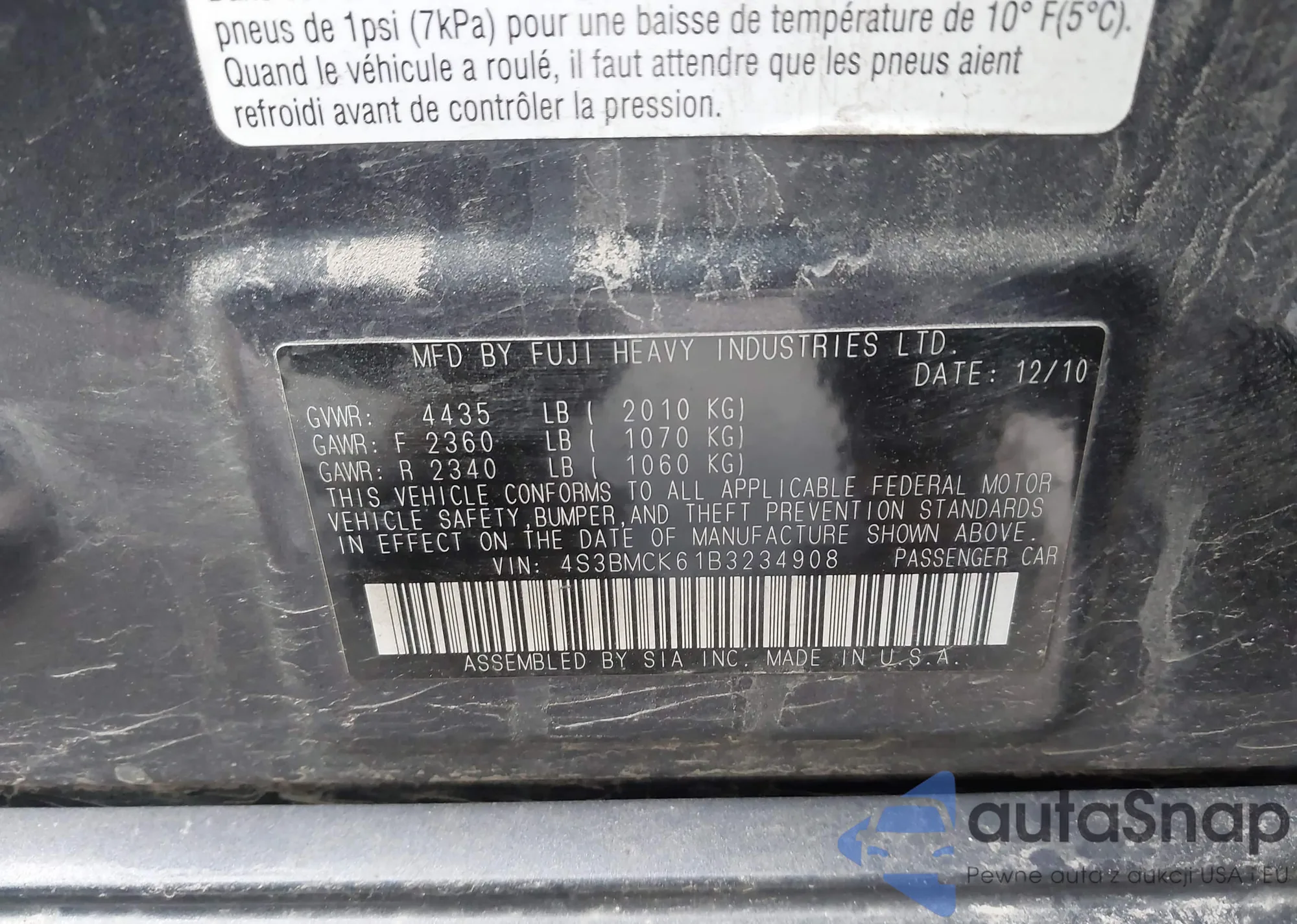 • VIN 4S3BMCK61B3234908