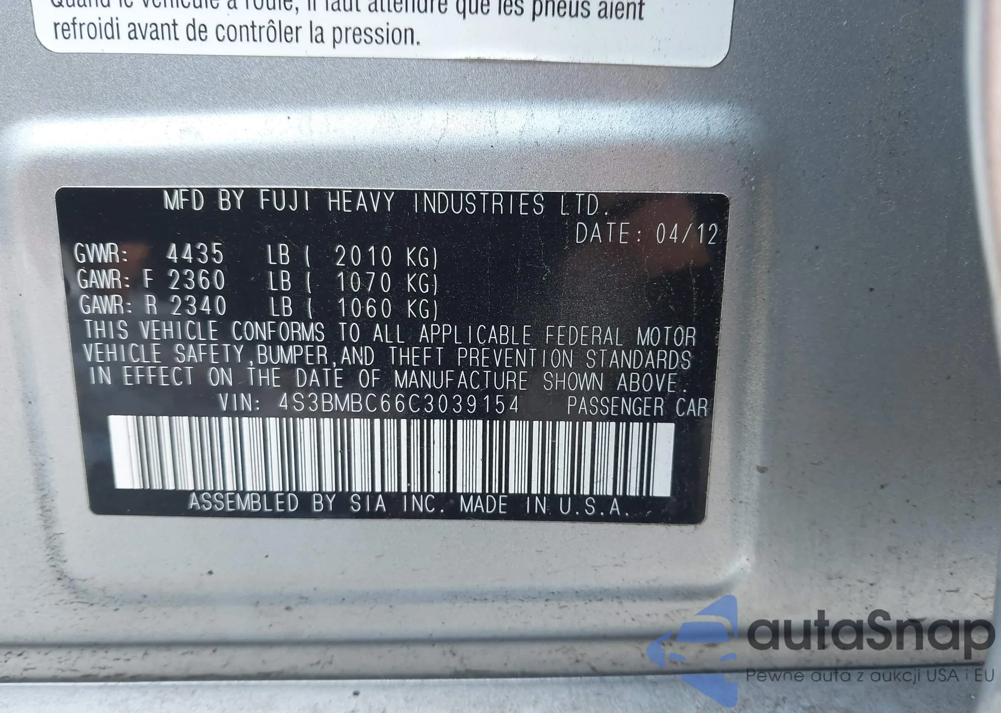• VIN 4S3BMBC66C3039154