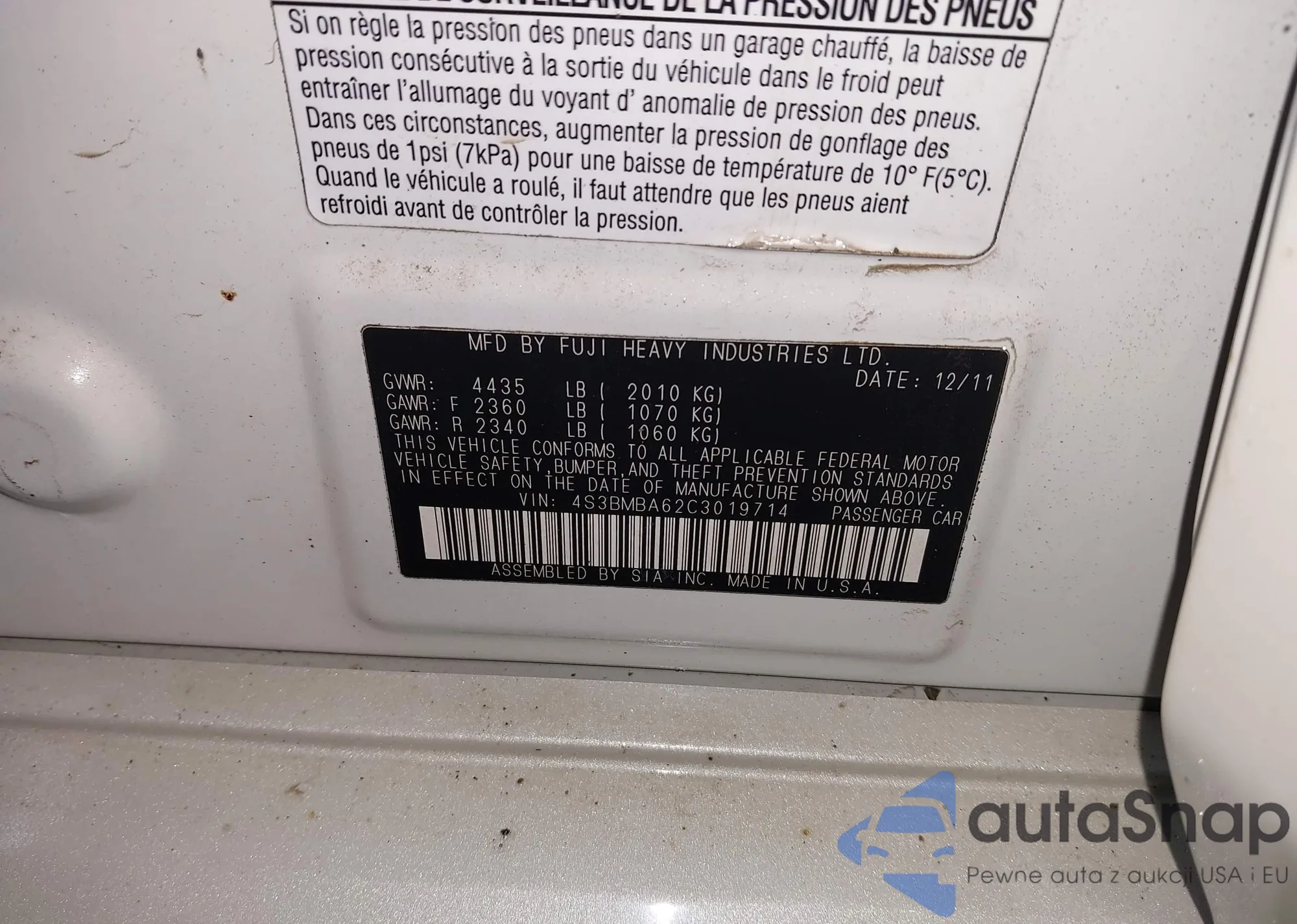 • VIN 4S3BMBA62C3019714