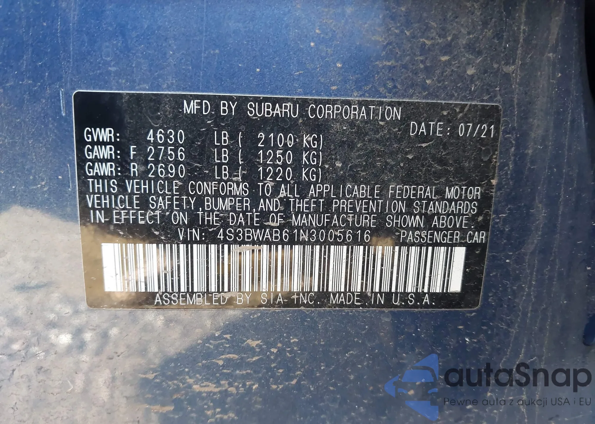 • VIN 4S3BWAN65M3018458