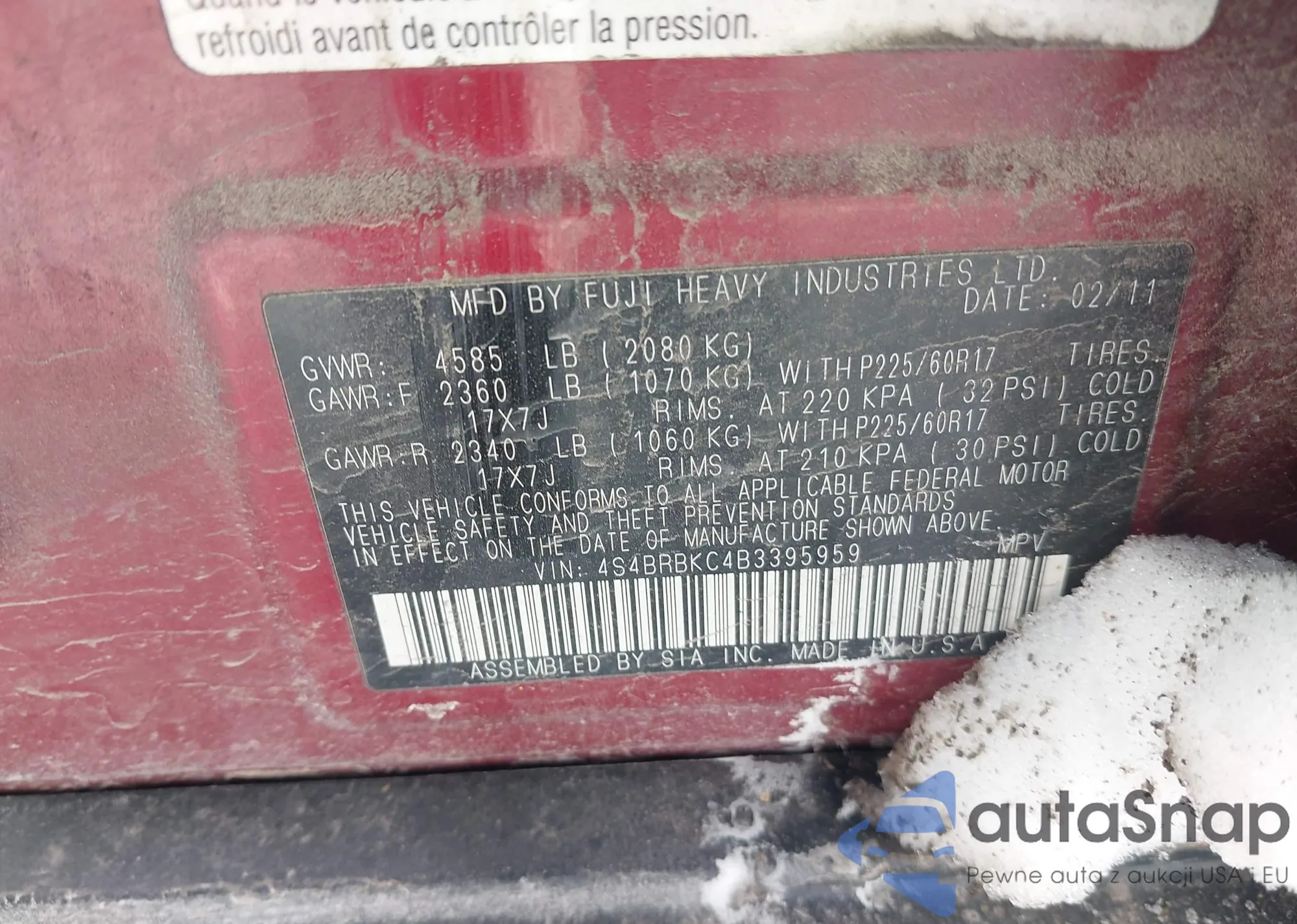 • VIN 4S4BRBKC4B3395959