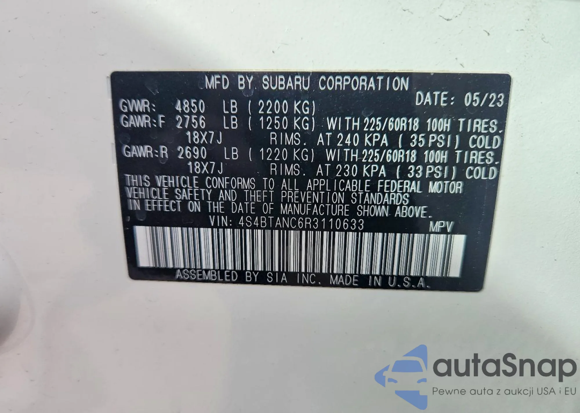 • VIN 4S4BTANC6R3110633
