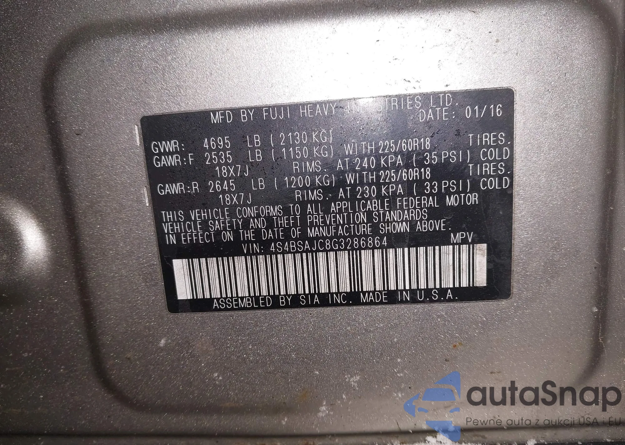 • VIN 4S4BSAJC8G3286864