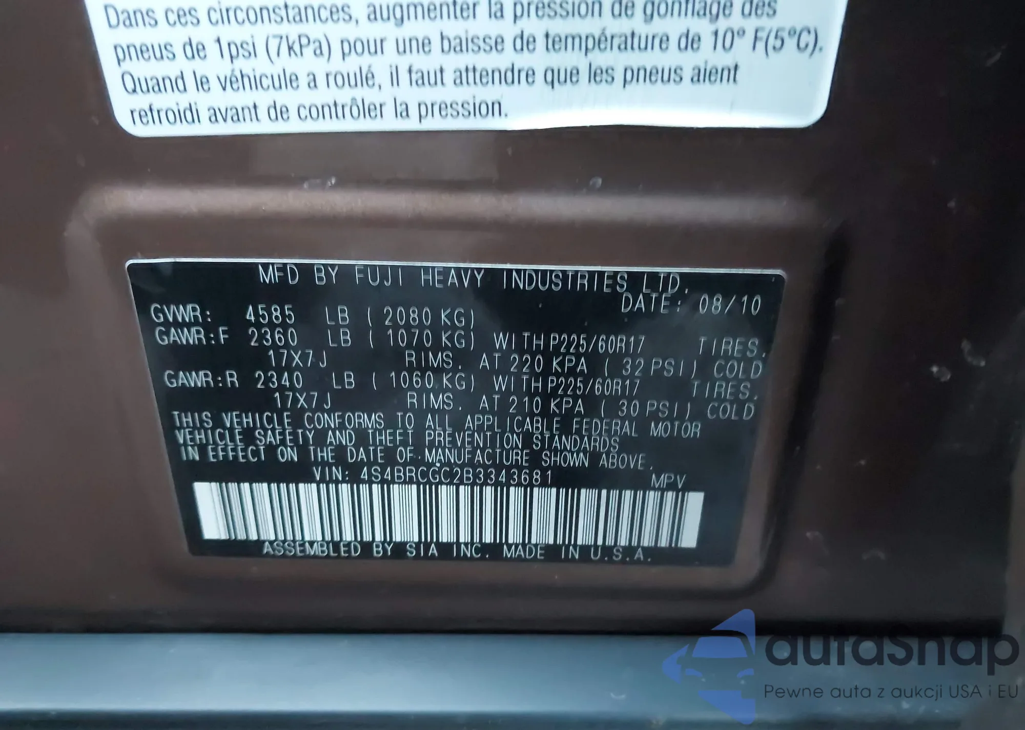 • VIN 4S4BRCGC2B3343681
