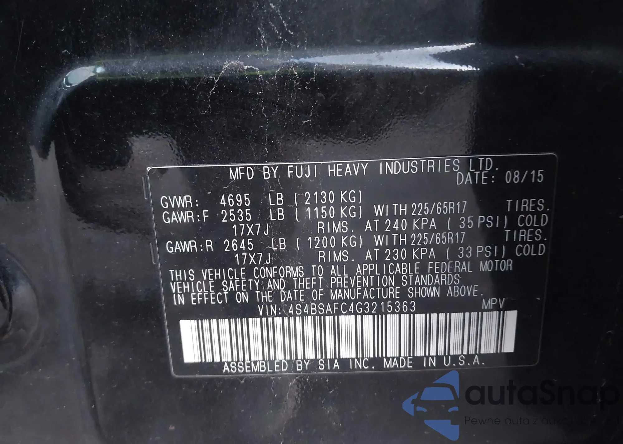 • VIN 4S4BSAFC4G3215363