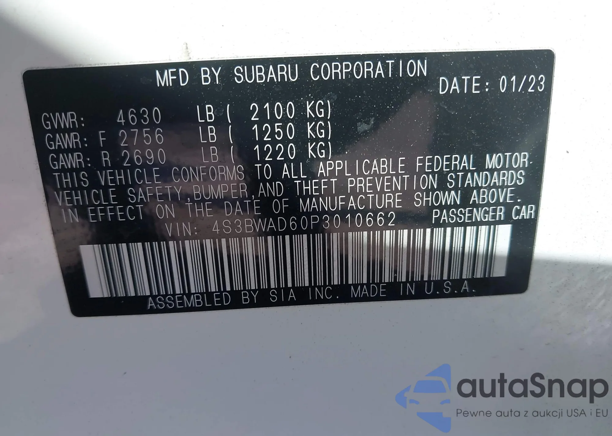 • VIN 4S3BWAD60P3010662