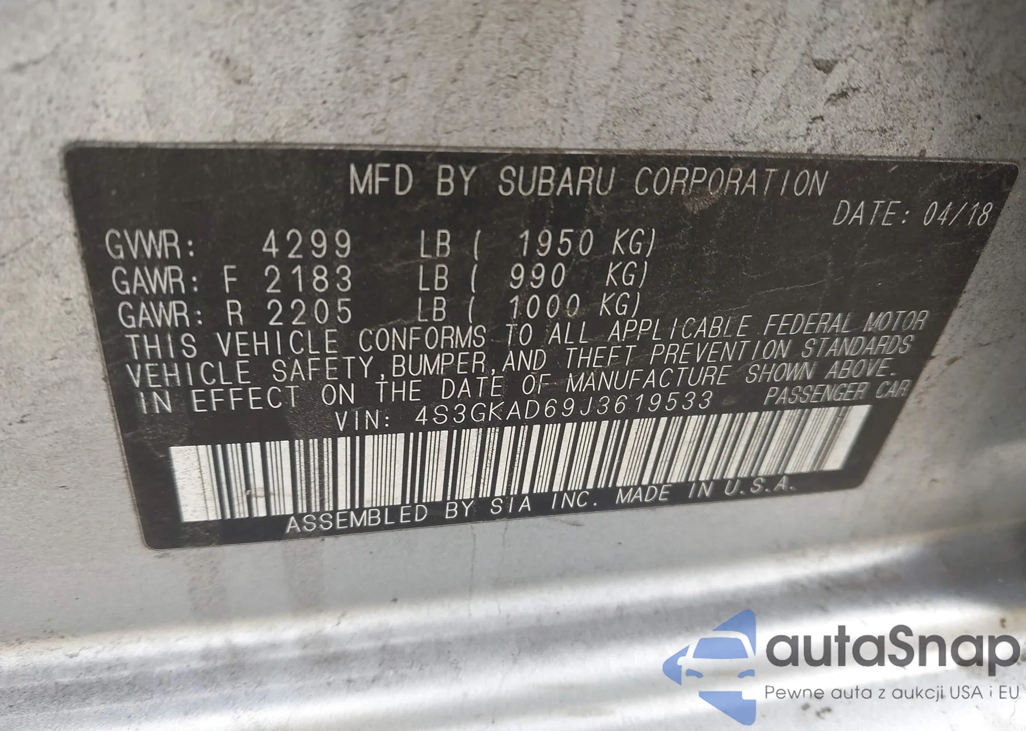 • VIN 4S3GKAD69J3619533