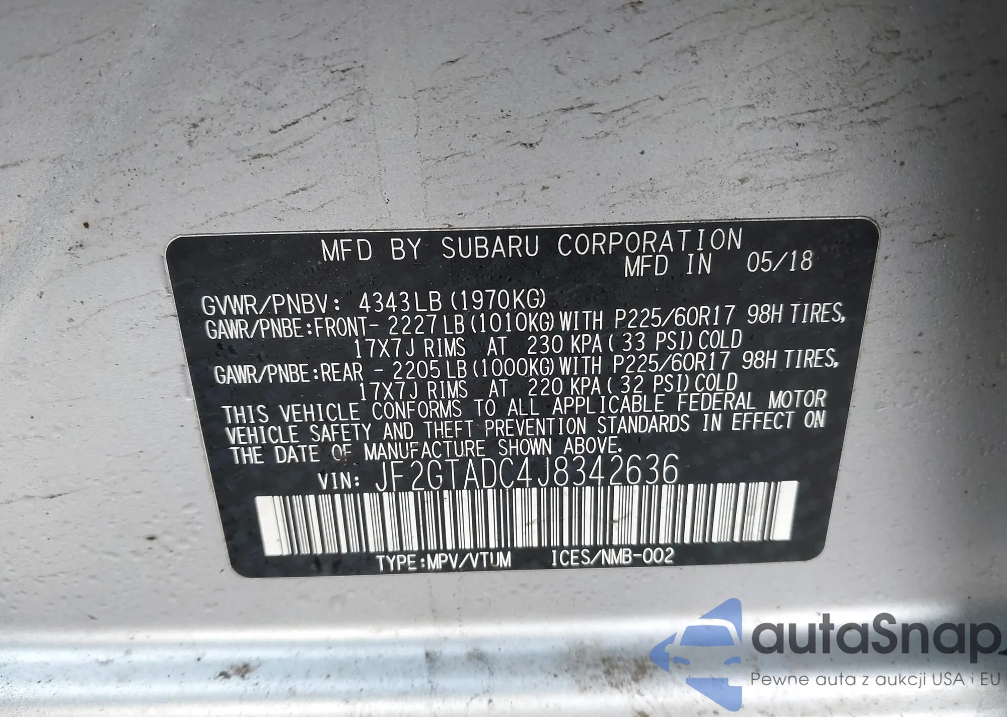 • VIN JF2GTADC4J8342636