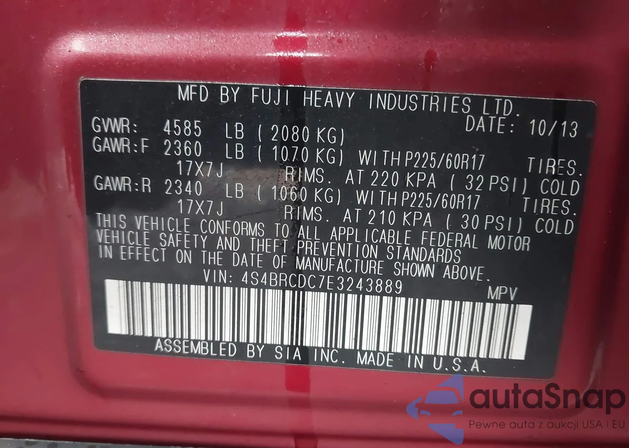 • VIN 4S4BRCDC7E3243889