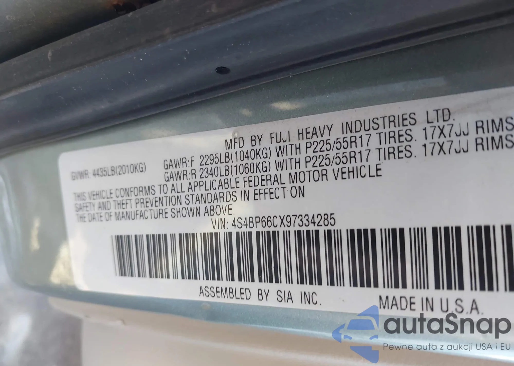 • VIN 4S4BP66CX97334285