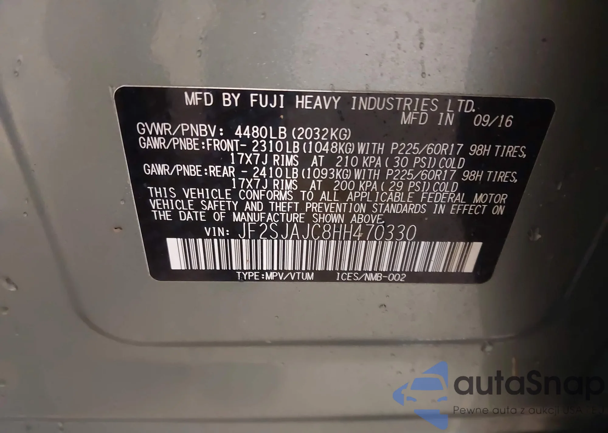 • VIN JF2SJAJC8HH470330
