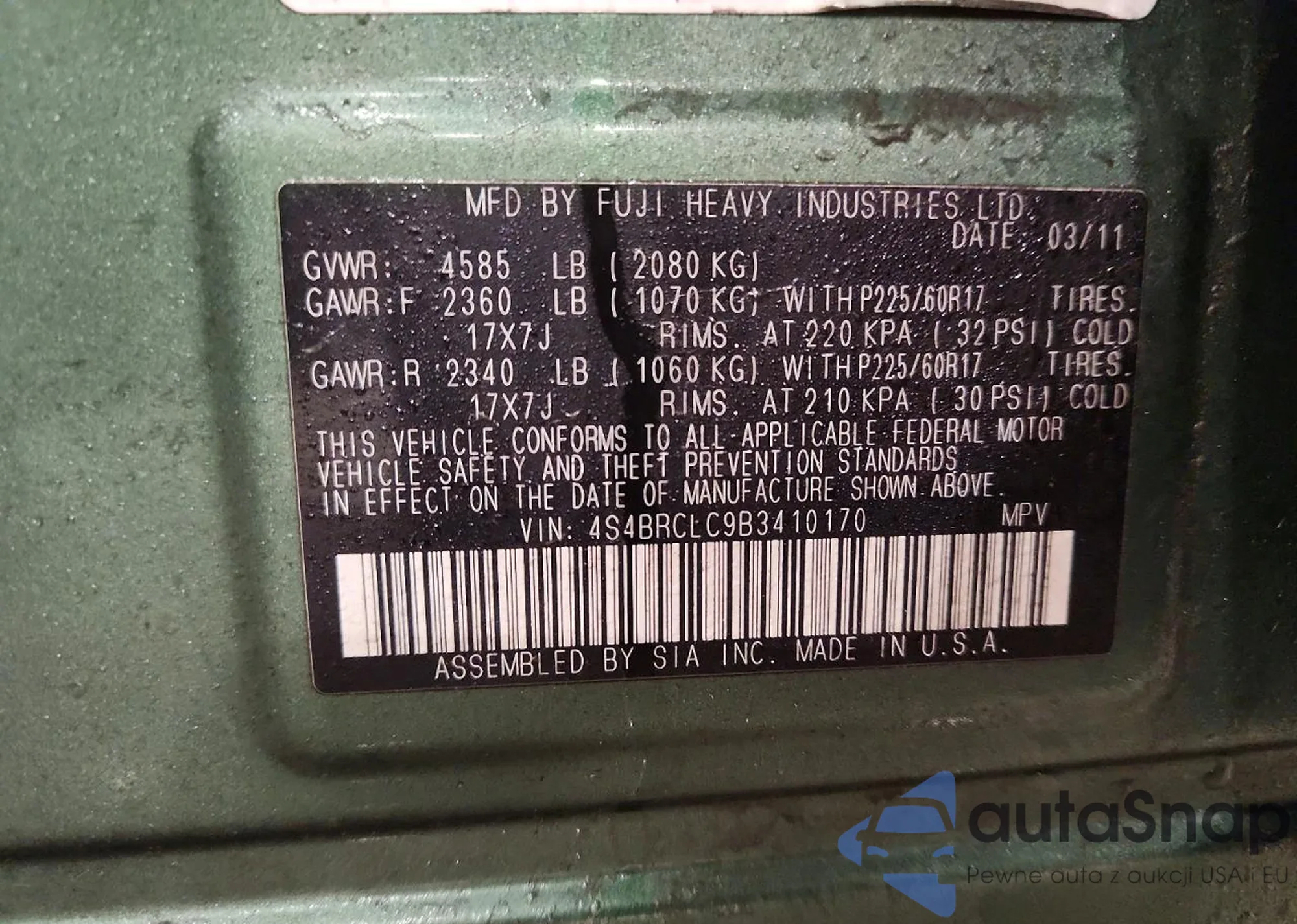• VIN 4S4BRCLC9B3410170