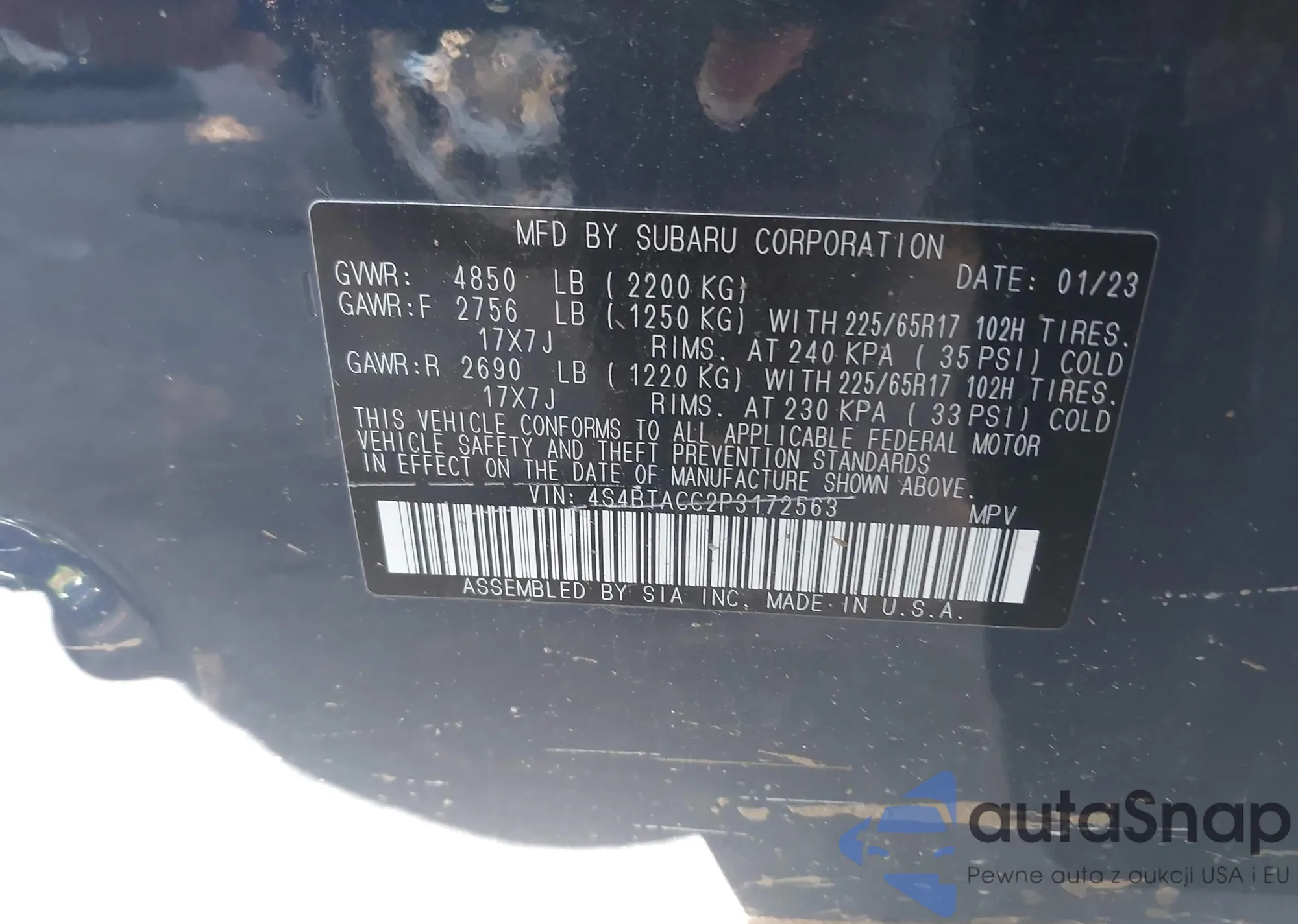 • VIN 4S4BTACC2P3172563