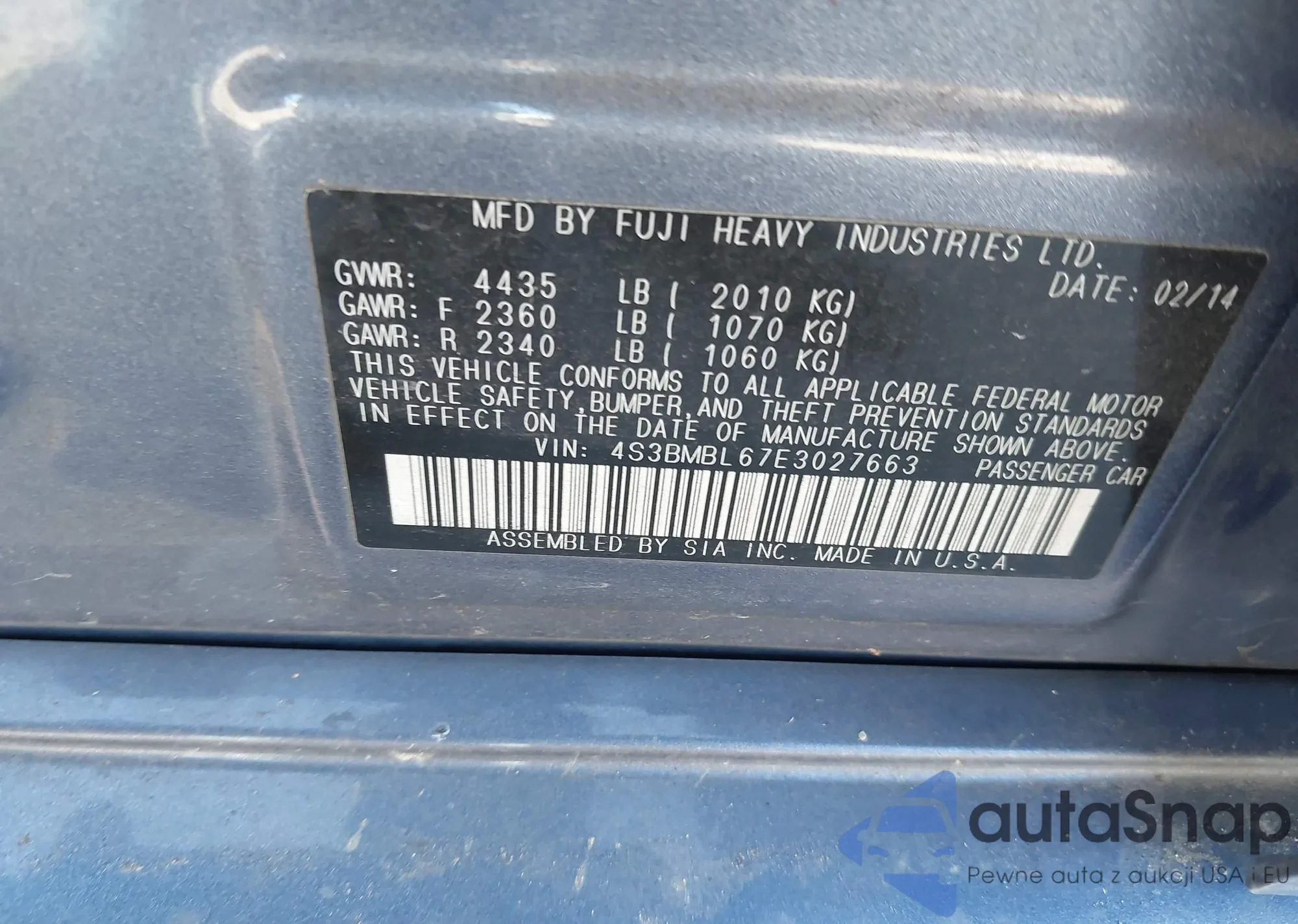 • VIN 4S3BMBL67E3027663