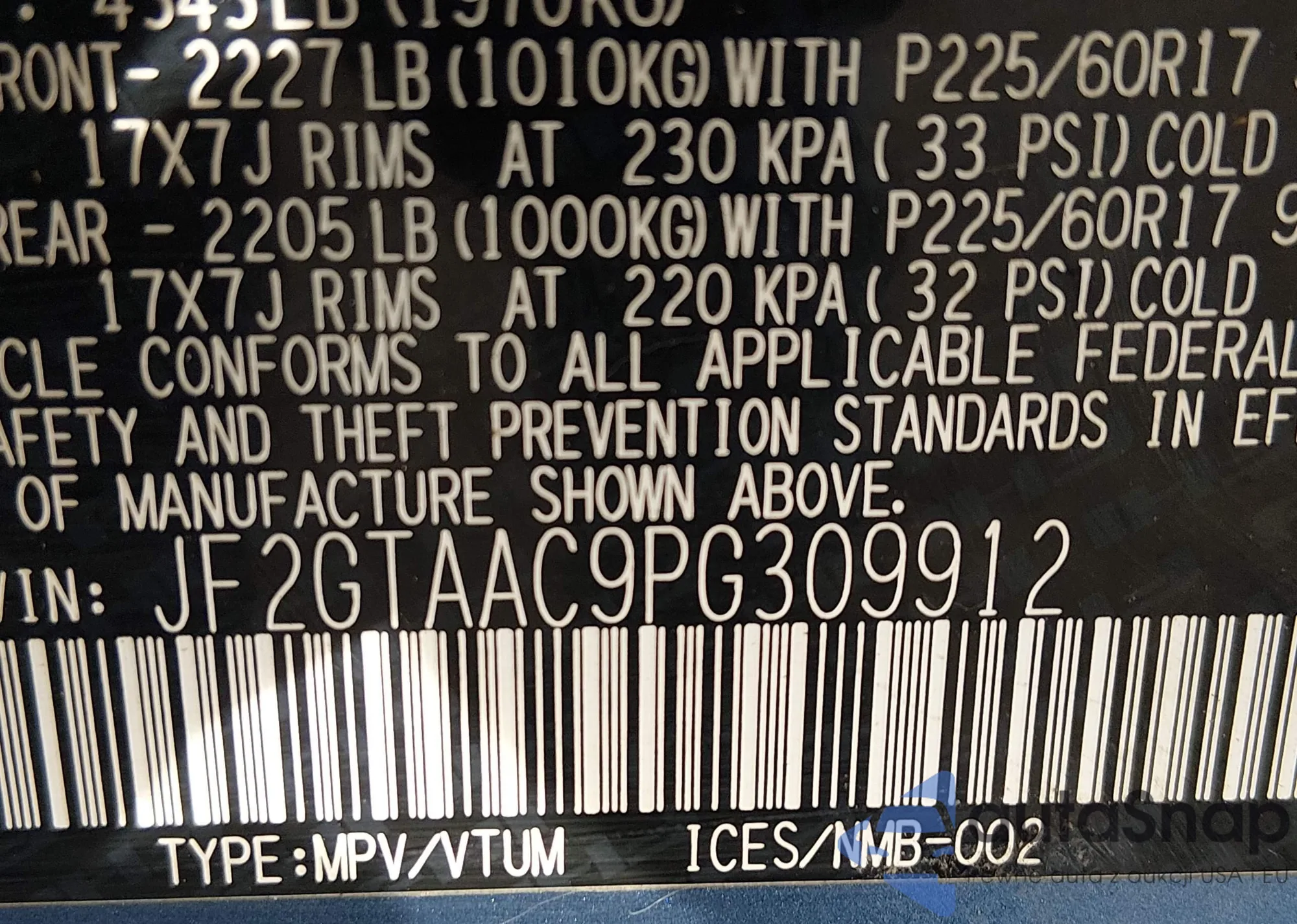 • VIN JF2GTAAC9PG309912