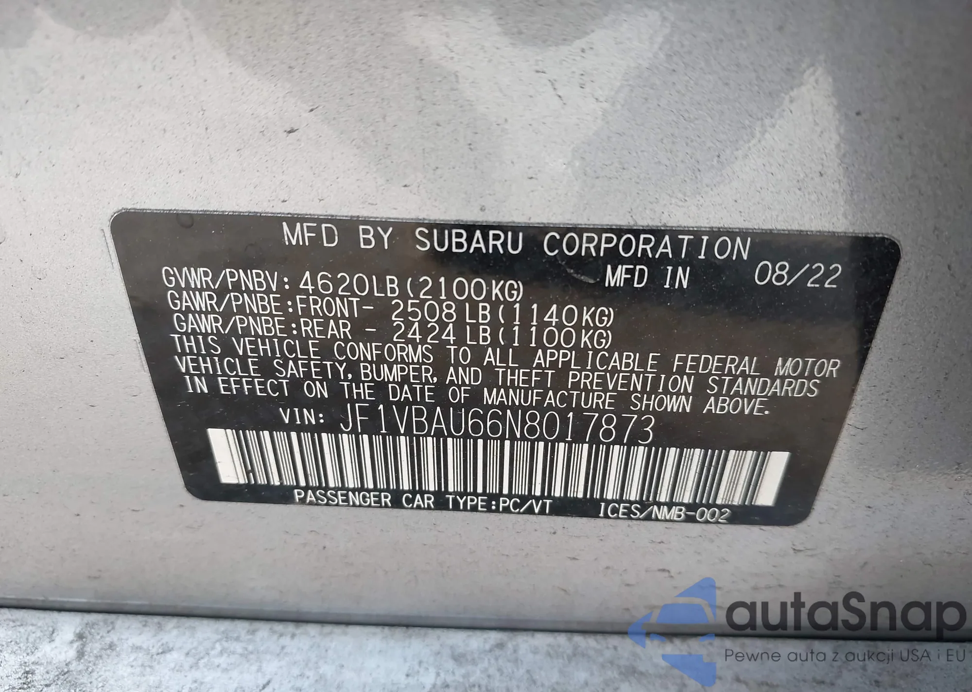 • VIN JF1VBAU66N8017873