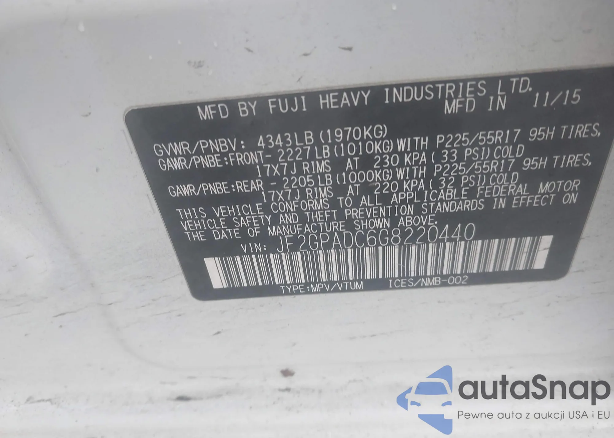 • VIN JF2GPADC6G8220440