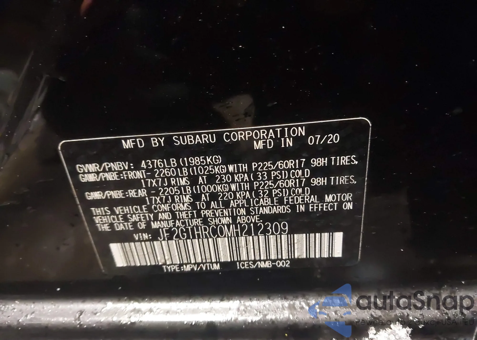 • VIN JF2GTHMC0MH392589