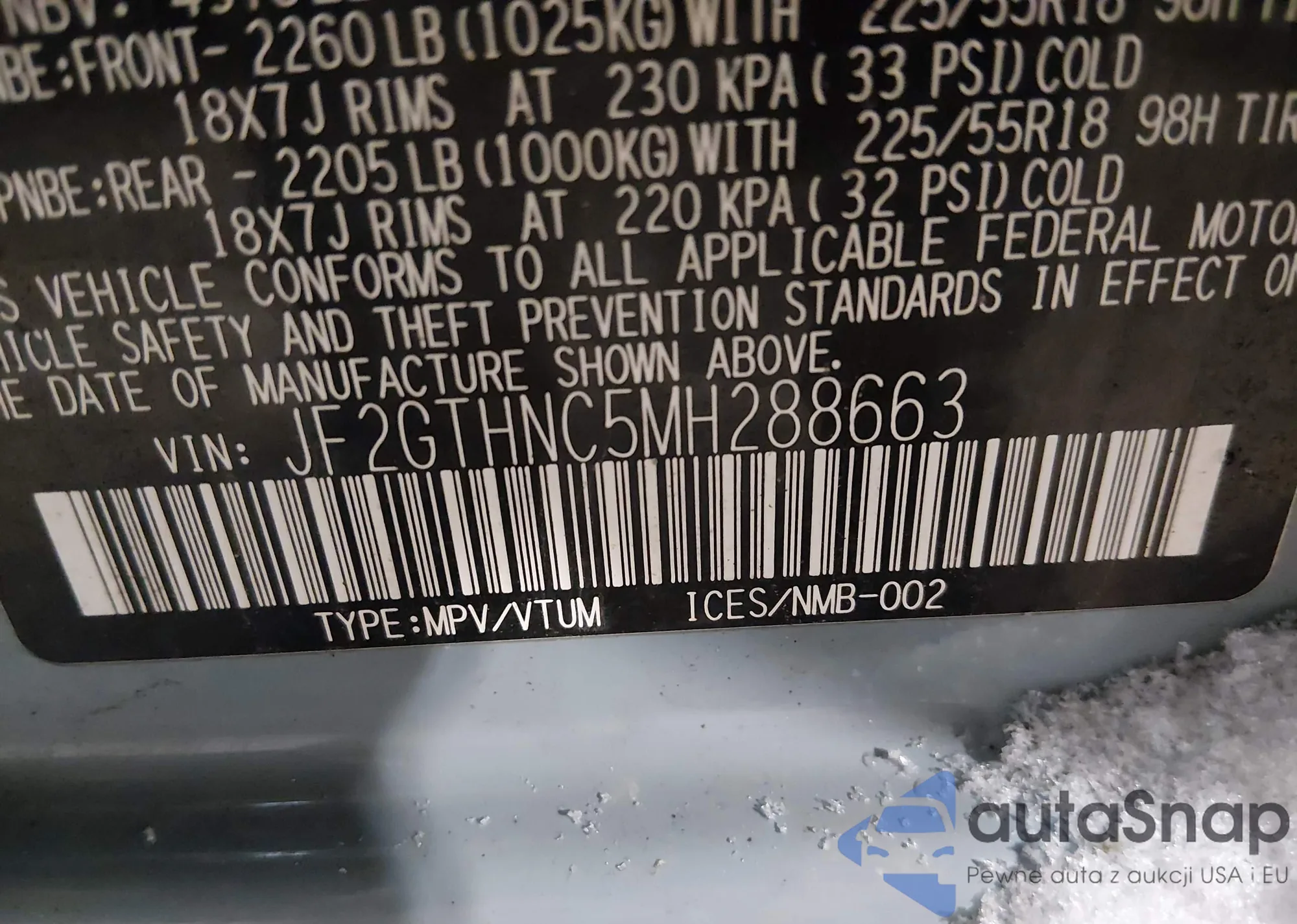 • VIN JF2GTHNC5MH288663