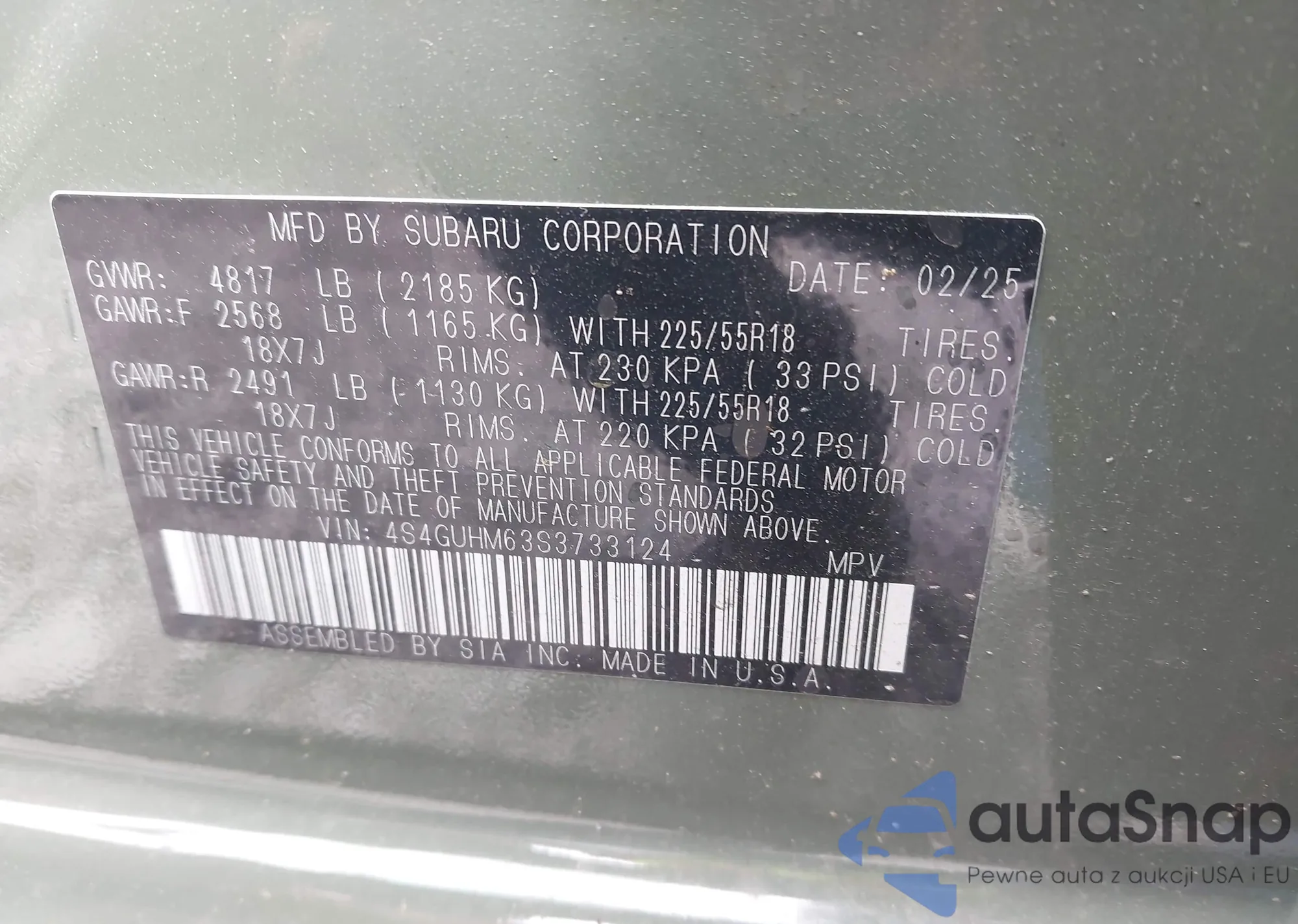 • VIN 4S4GUHM63S3733124