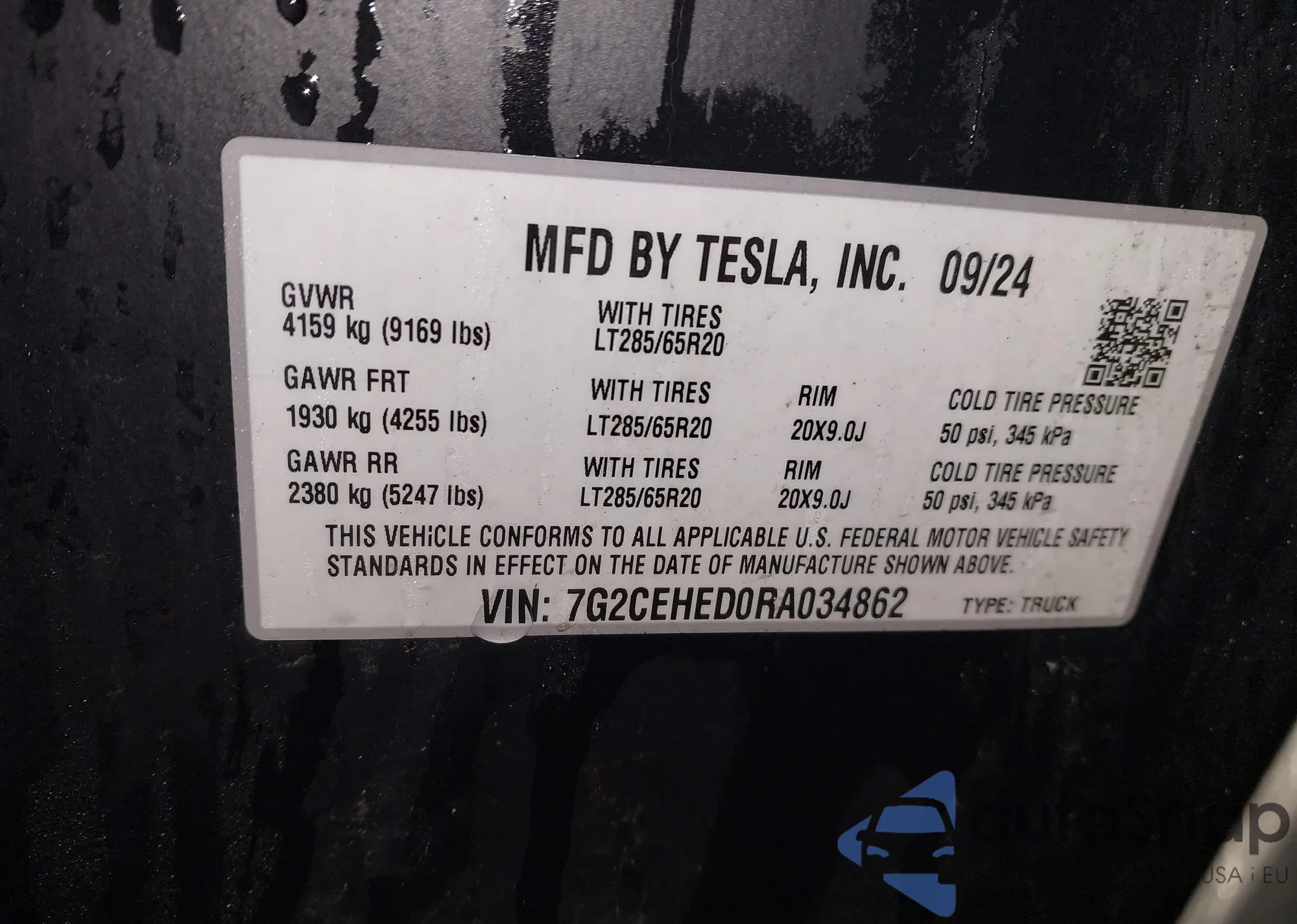 2024 Tesla Cybertruck All-Wheel Drive z USA, uszkodzony, nr VIN 7G2CEHED0RA034862