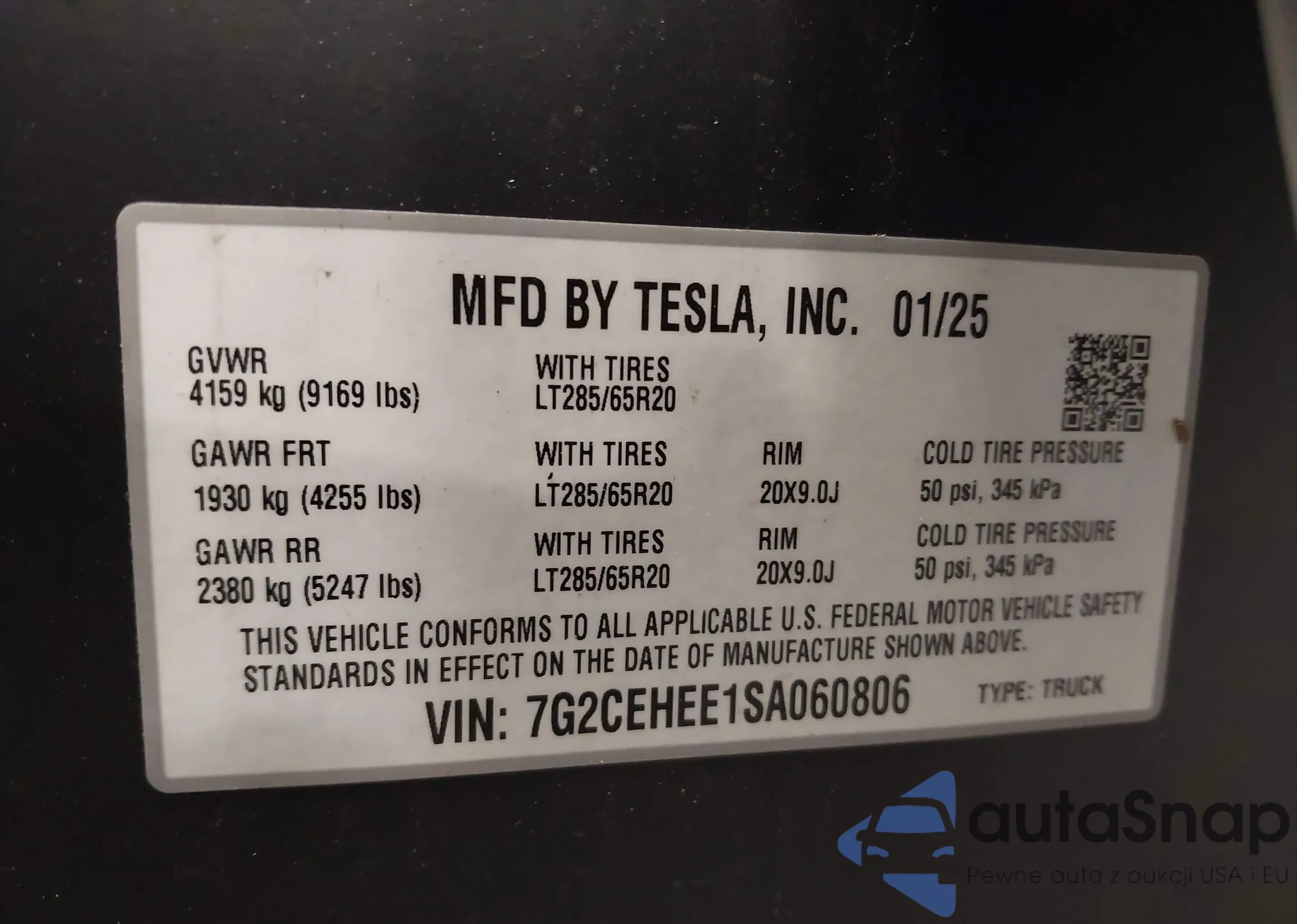 2025 Tesla Cybertruck z USA, uszkodzony, nr VIN 7G2CEHED6SA059240