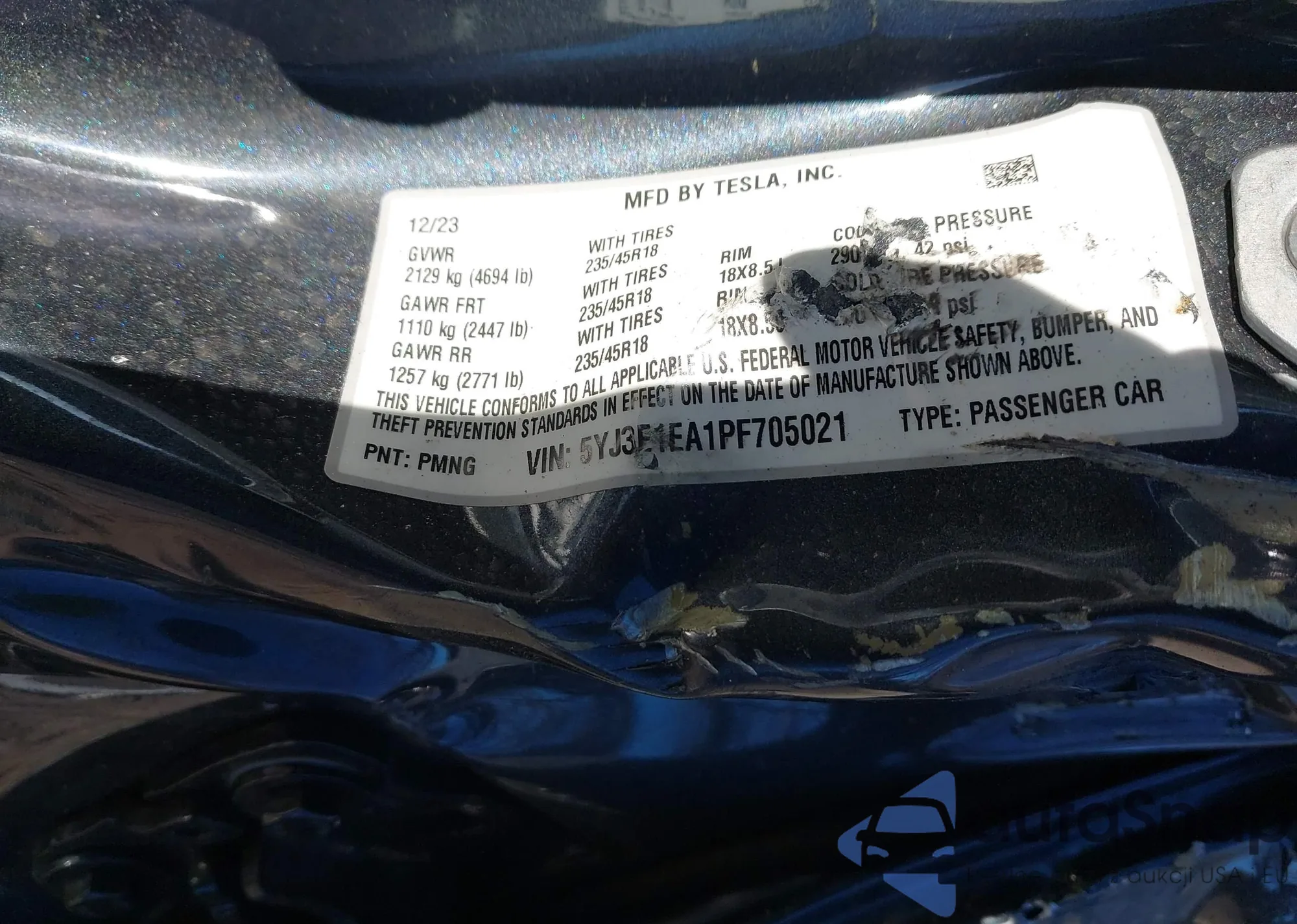 • VIN 5YJ3E1EA1PF705021