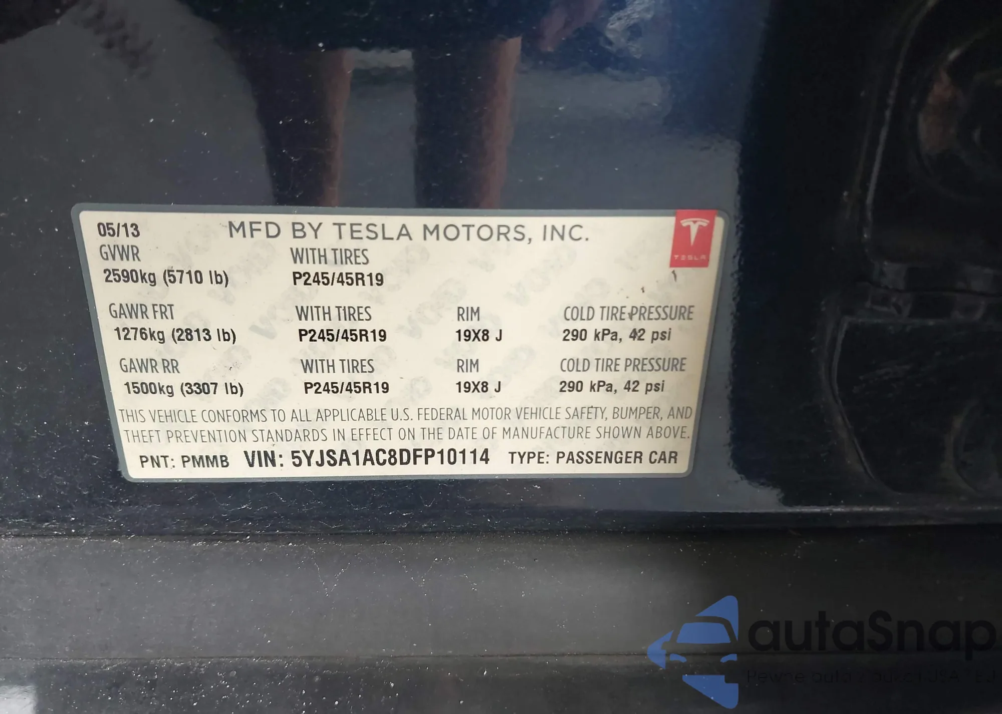 • VIN 5YJSA1AC8DFP10114