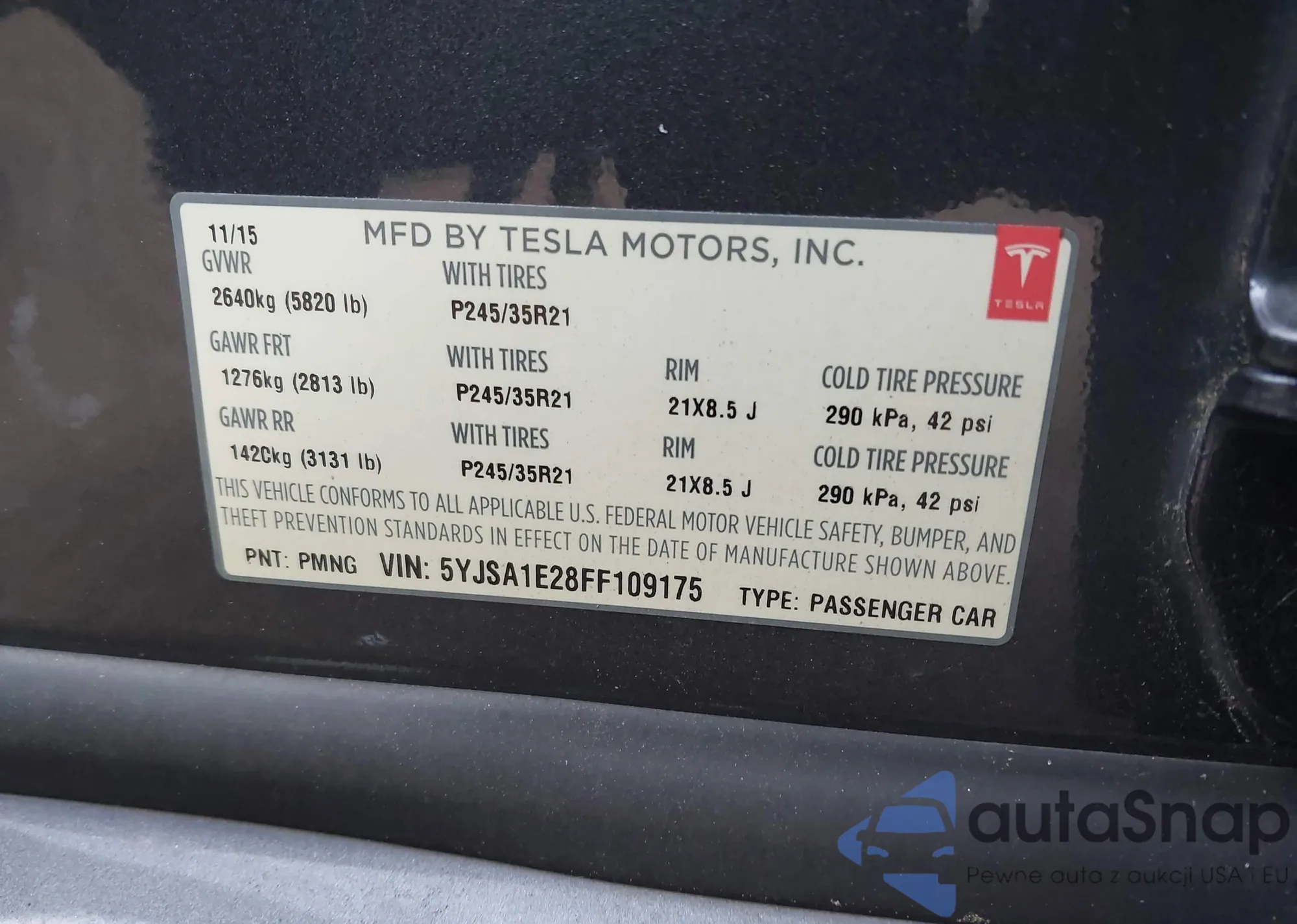 • VIN 5YJSA1E28FF109175