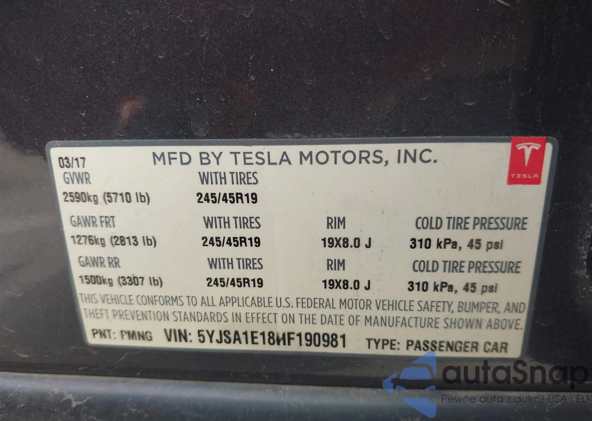 • VIN 5YJSA1E18HF190981
