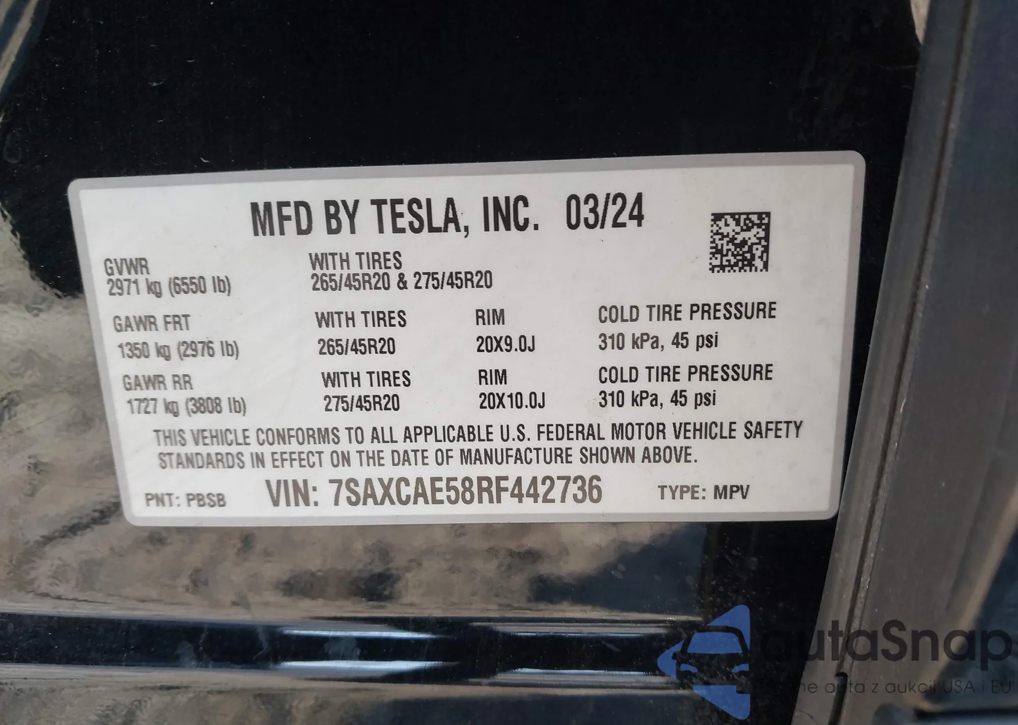 2024 Tesla Model X Long Range z USA, uszkodzony, nr VIN 7SAXCAE58RF442736