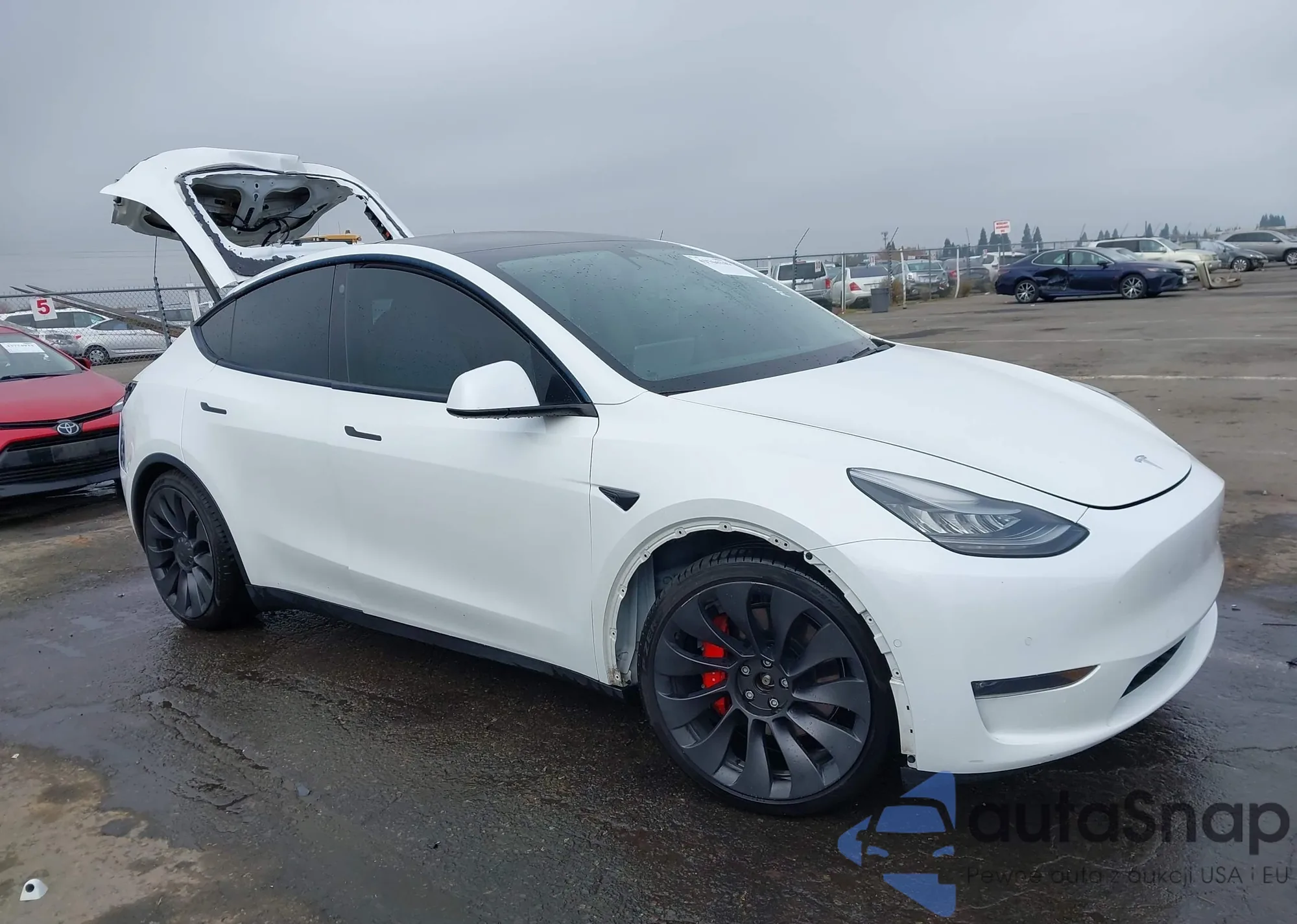 2021 Tesla Model Y Performance Dual Motor All-Wheel Drive z USA, uszkodzony, nr VIN 5YJYGDEF6MF073044