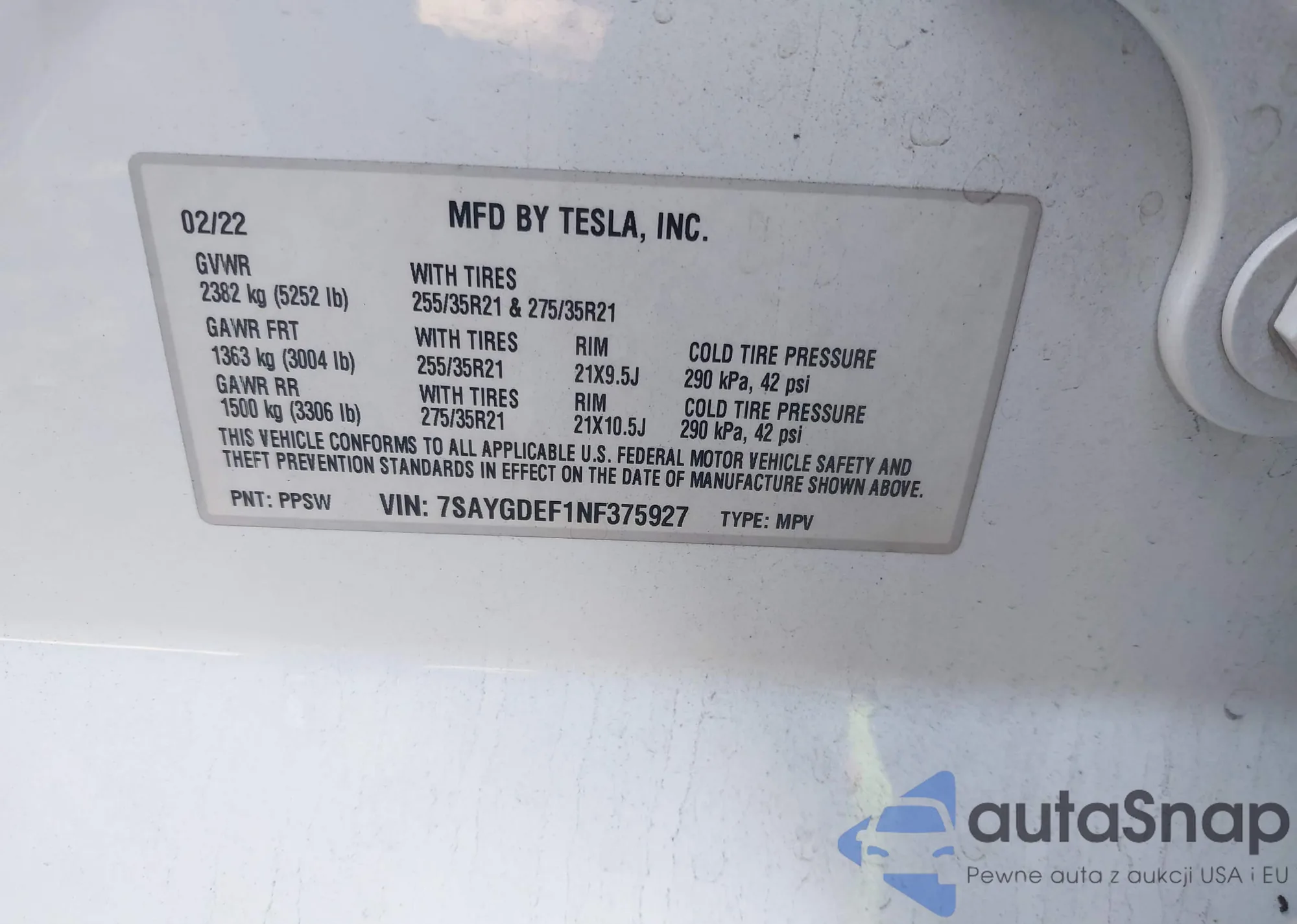 • VIN 7SAYGDEF1NF375927