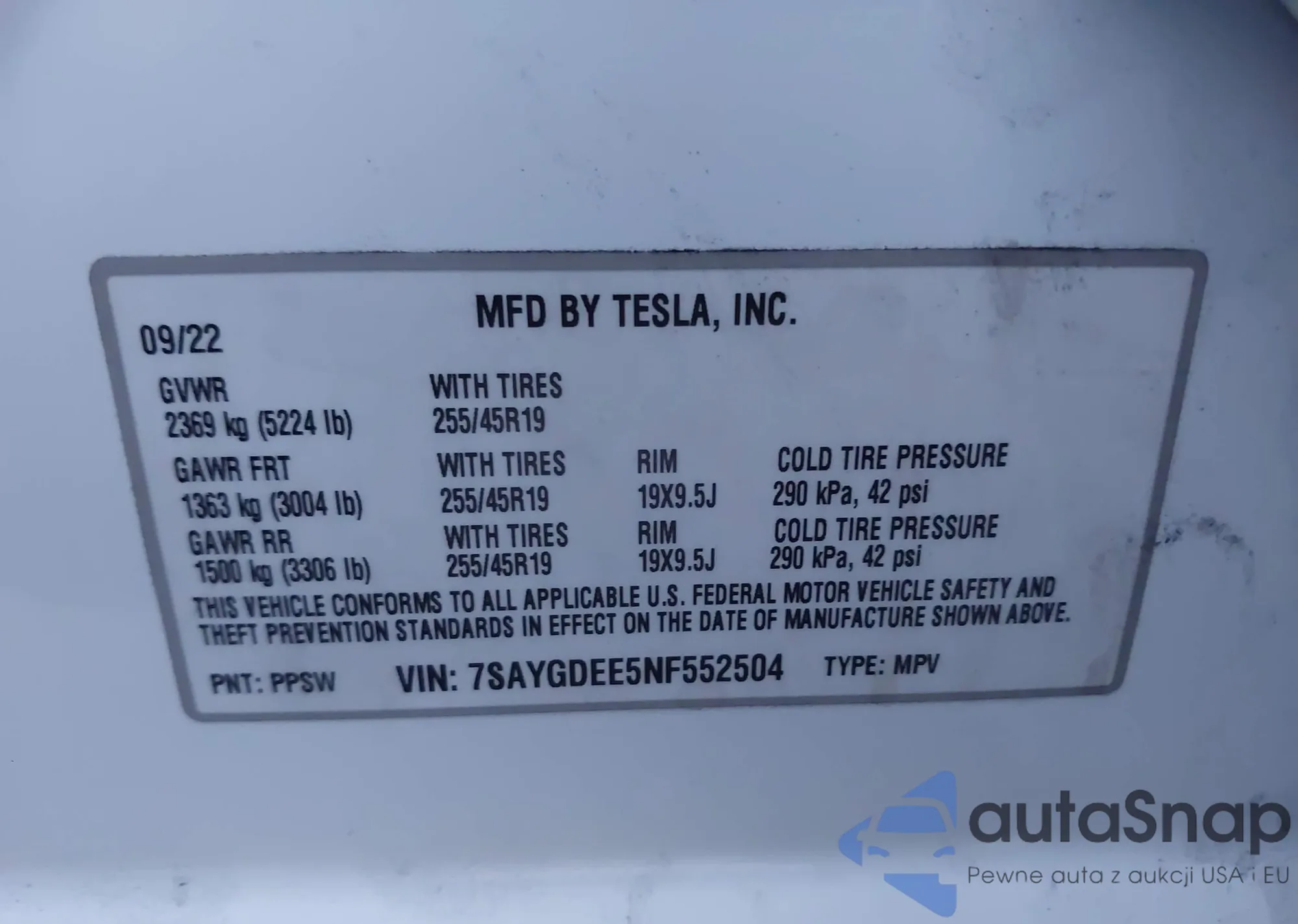 • VIN 7SAYGDEE5NF552504