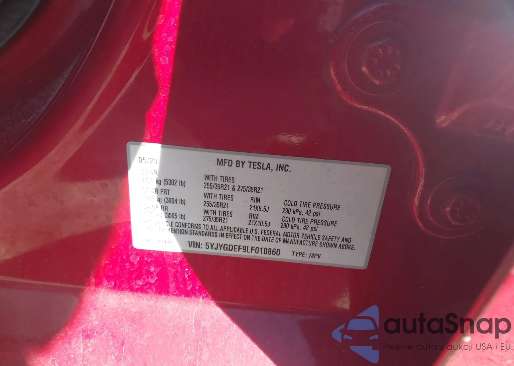 LOT: 43996638 VIN: 5YJYGDEF9LF010860
