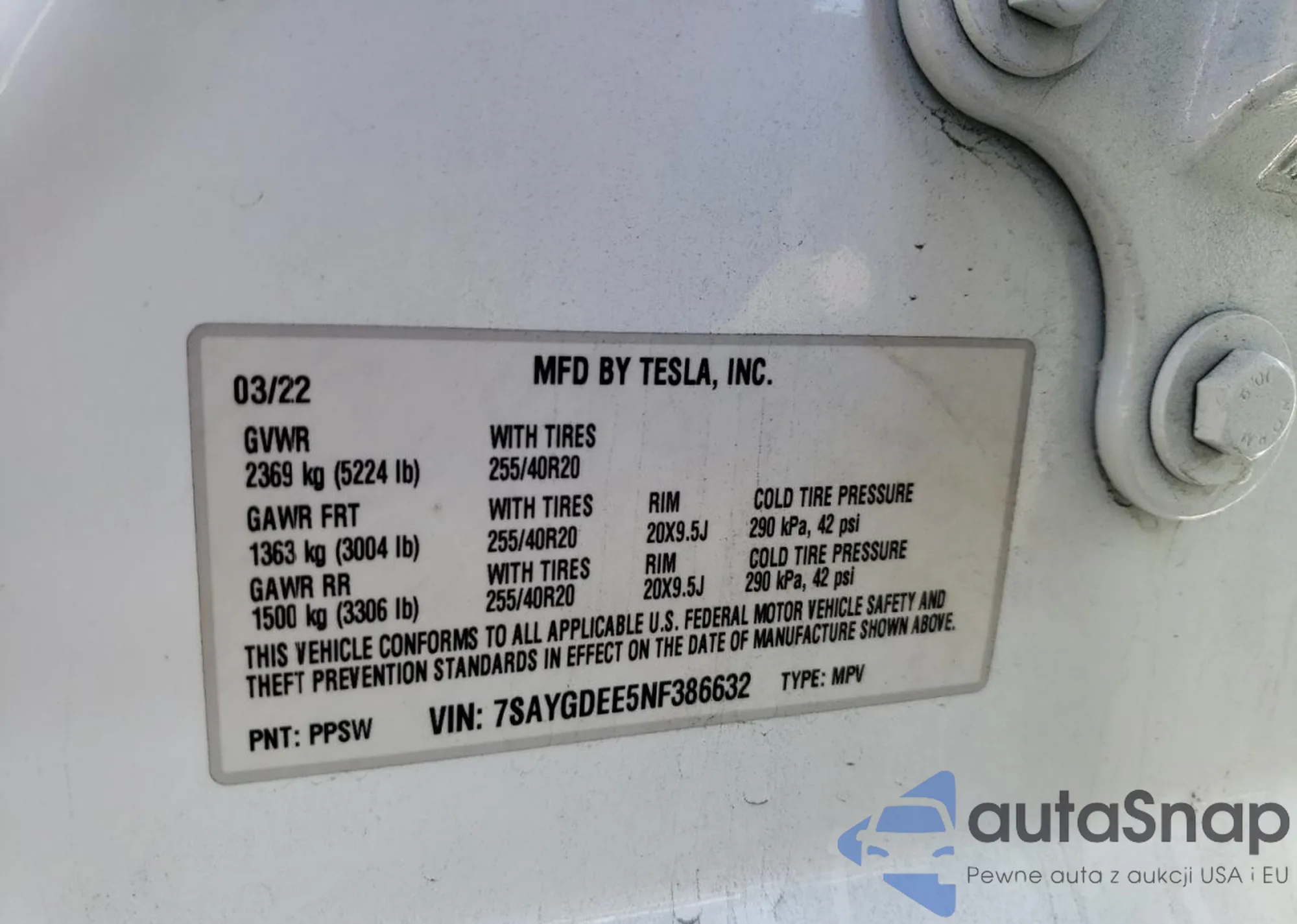 • VIN 7SAYGDEF6NF495321