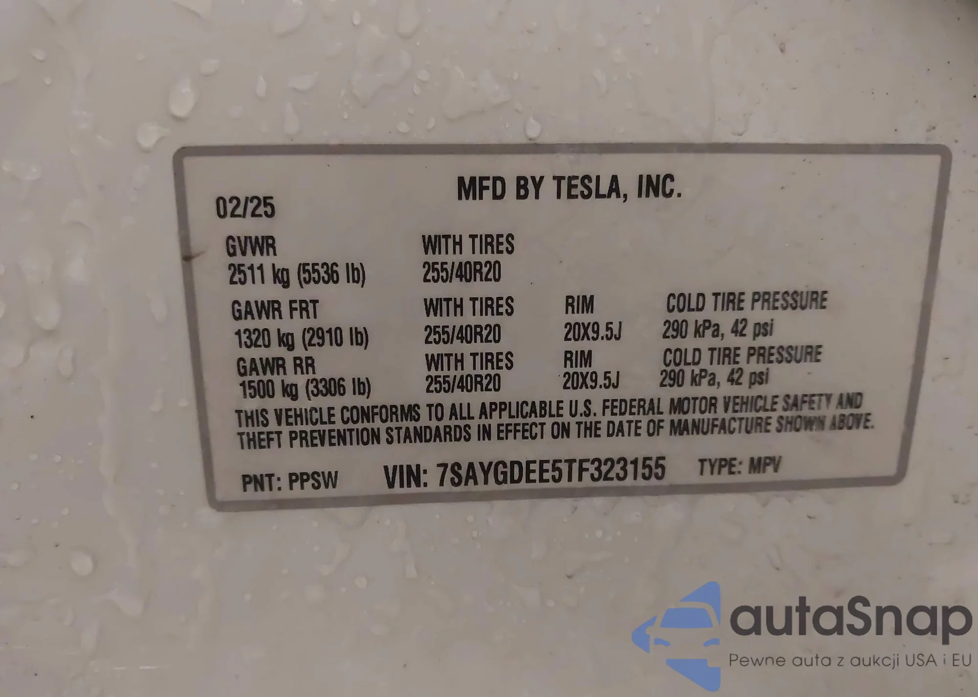 2025 Tesla Model Y z USA, uszkodzony, nr VIN 7SAYGDED8SA343175