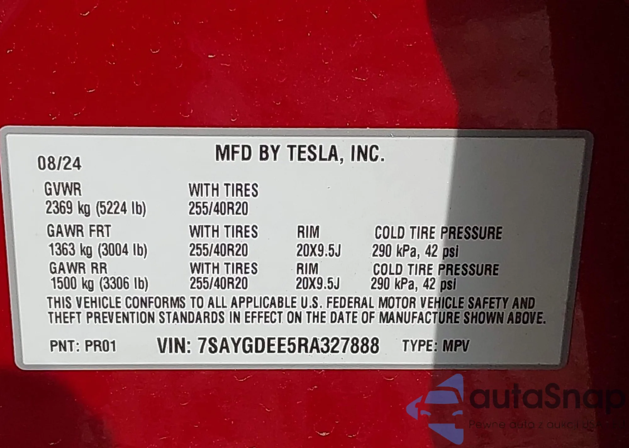 2024 Tesla Model Y z USA, uszkodzony, nr VIN 7SAYGDEF9RF119010
