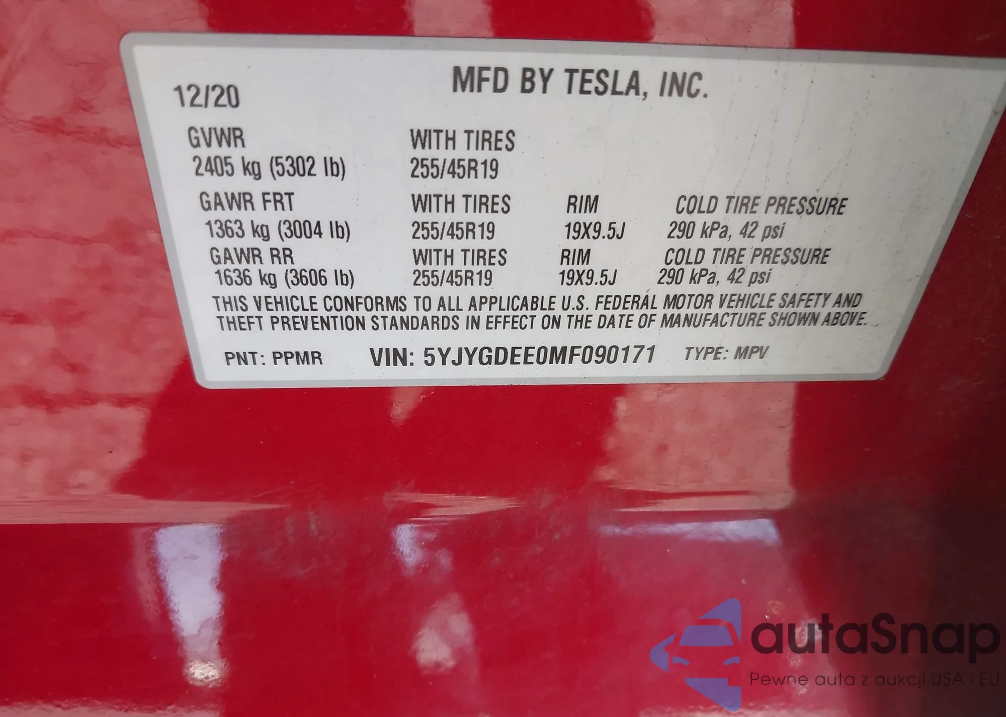 LOT: 73902305 VIN: 5YJYGDEE8MF097630