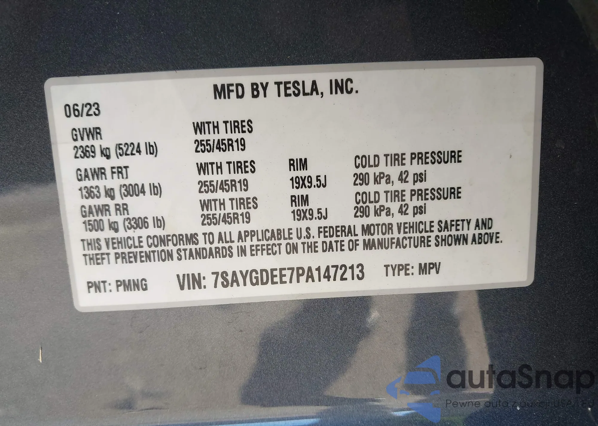 • VIN 7SAYGDEE7PA147213