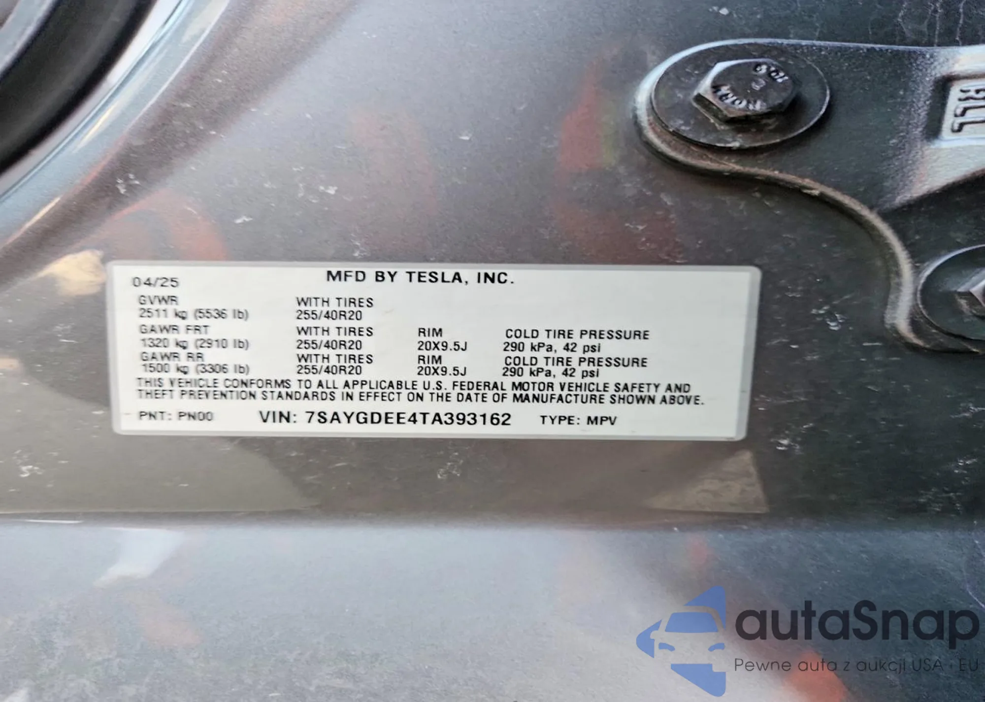 LOT: 44037433 VIN: 7SAYGDEE5TA380985