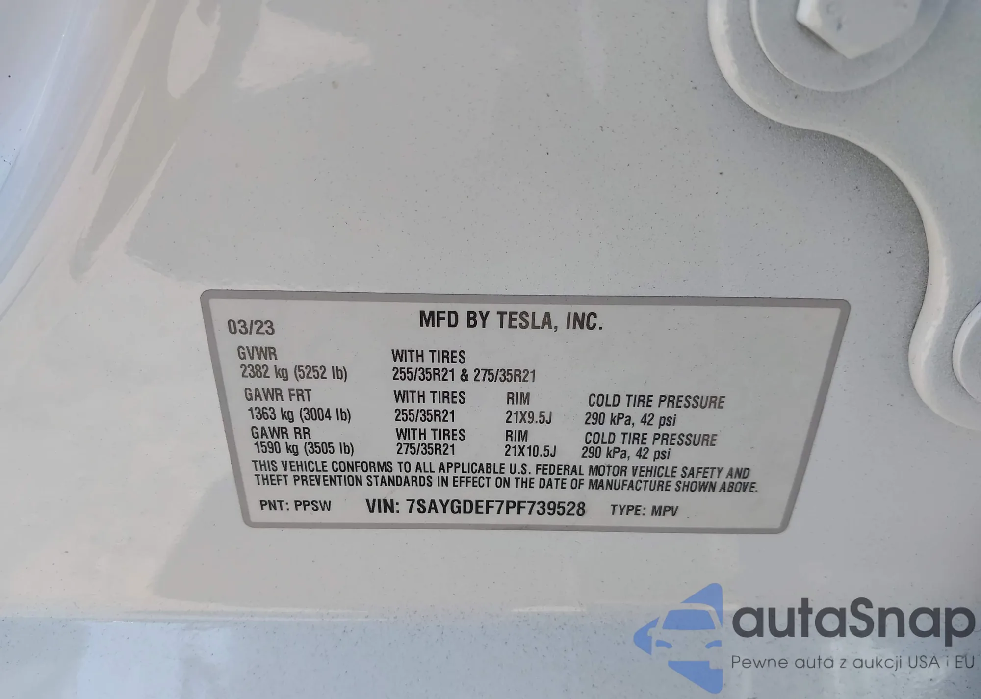• VIN 7SAYGDEF7PF739528